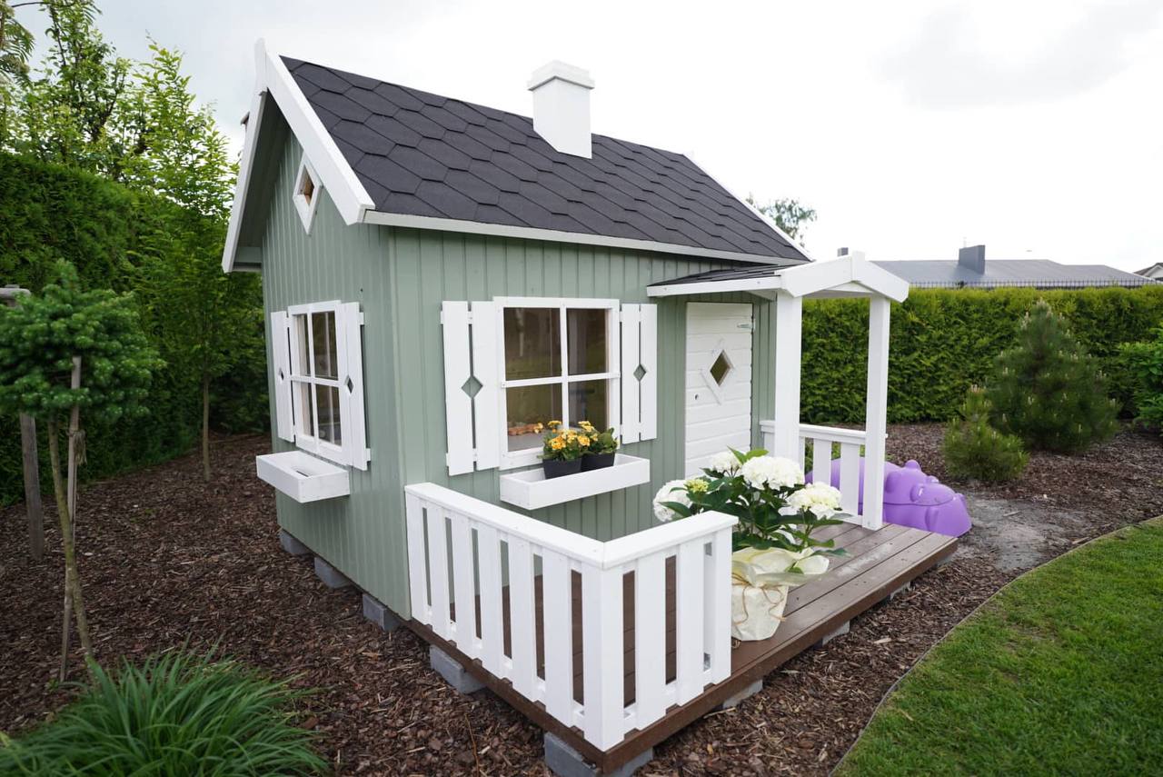 PASTABA! Nameliai pristatomi nesurinkit ir nenudažyti. Nuotraukose parodyta kaip gali atrodyti pastatytas bei nudažytas namelis.