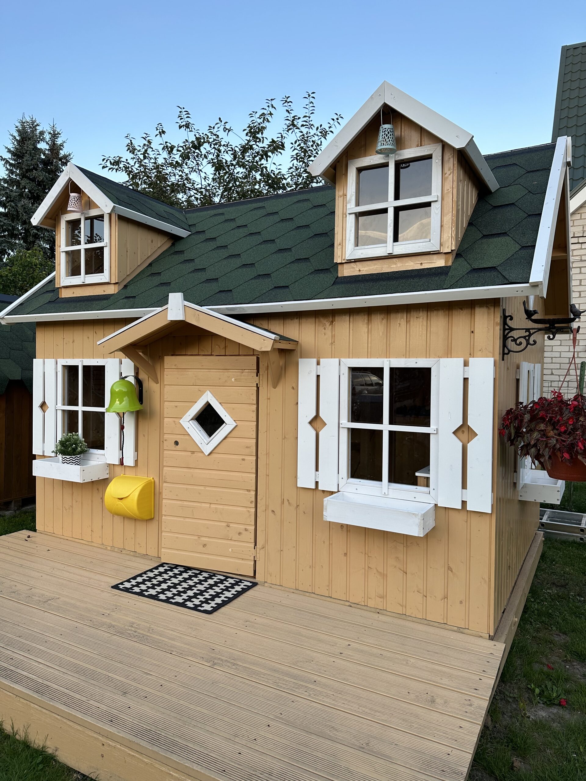 Vienas įspūdingiausių ir dižiausių plotu mūsų turimų namelių. Tikra pasakiška tvirtovė! Vaikų žaidimų namelis MARIJA sukurtas specialiai jauniausiems šeimos nariams, sertifikuotas ir atitinka griežtus ES saugumo reikalavimus, tad yra visiškai saugus naudoti ir džiaugtis nuoširdžiomis pasaulio pažinimo akimirkomis! Lauko namelis MARIJA bus ne tik originali žaidimų erdvė Jūsų vaikams bet ir puiki kiemo puošmena!