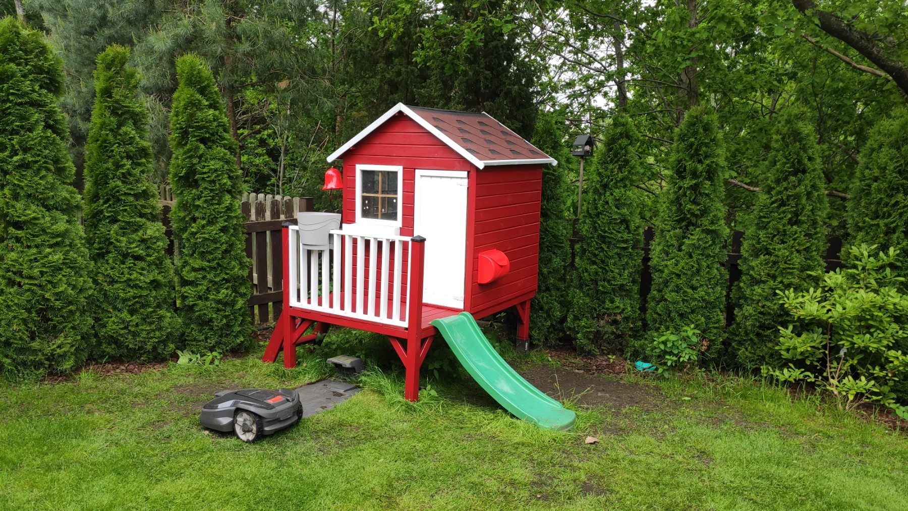 Namelis turi TÜV sertifikatą, skirtas įrengti prie namų esančiose žaidimų aikštelėse, atitinka standartą EN 71 |