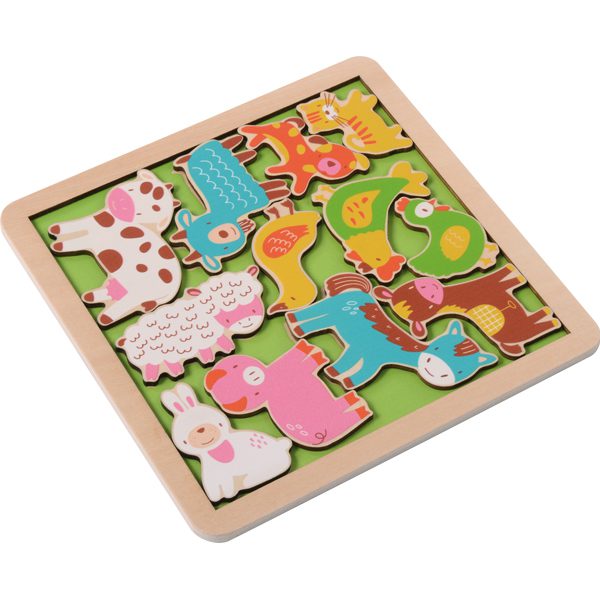 Spalvingas medinių dėlionių rinkinys – net 5 skirtingos medinės dėlionės viename komplekte – specialiai sukurtas vaikams darželyje ar namuose. Kiekviena dėlionė turi atspausdintą siluetą ant lentos, todėl vaikui lengviau sudėti figūras tiksliomis vietomis; žaidimas skatina koncentraciją, smulkiąją motoriką ir kalbos lavinimą. Ar tikrai visi gyvūnai tilps į aptvarą, žuvys į vandens baseiną, transporto priemonės į automobilių aikštelę? Iš anksto atspausdinti siluetai padeda surasti figūroms tinkamą vietą, kad lentoje tilptų visos dėlionės detalės. Dėlionės skatina atidų stebėjimą ir susikaupimą.