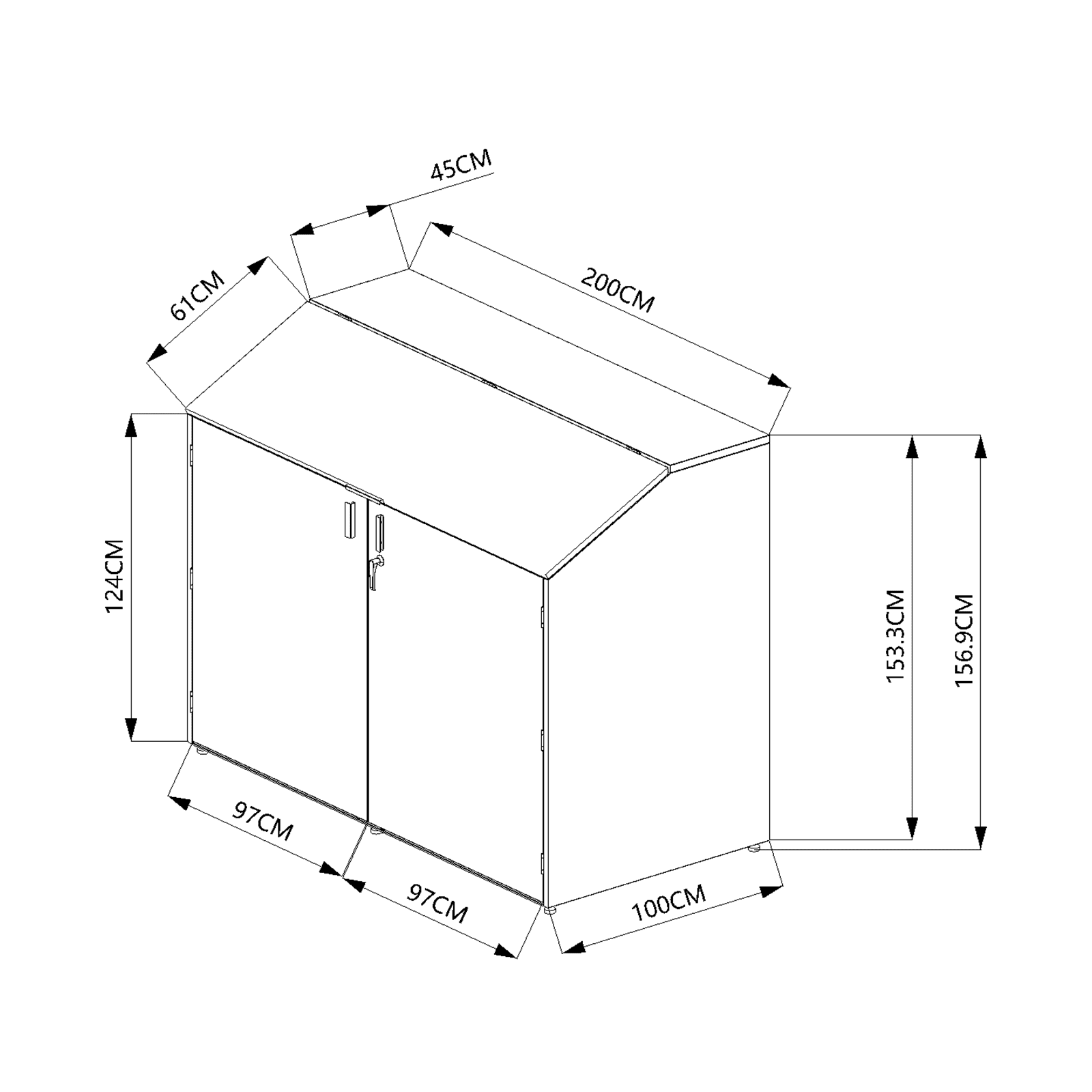 – Dviračių laikymo zonos išmatavimai: 189.7 x 94.8 x 119.6 cm.