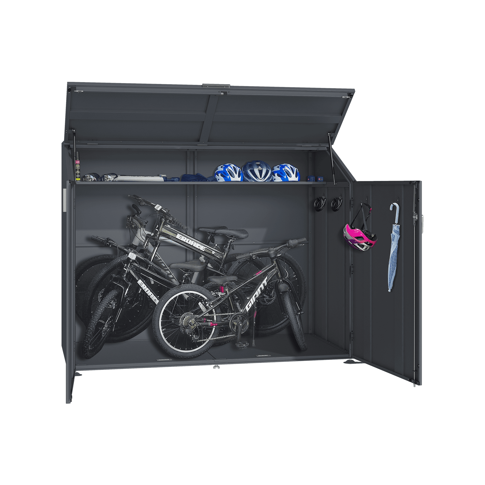 Saugykla suprojektuota taip, kad joje patogiai tilptų iki 4 skirtingų dydžių dviračių, todėl ji puikiai tinka šeimai ar aktyvaus gyvenimo būdo mėgėjams. Saugykloje telpa: 1 × ~74 cm (29″) dviratis, 2 × ~66 cm (26″) dviračiai, 1 × ~51 cm (20″) vaikiškas dviratis. Erdvės išplanavimas leidžia dviračius laikyti stabiliai, patogiai juos įstatyti ir išimti kasdieniam naudojimui.