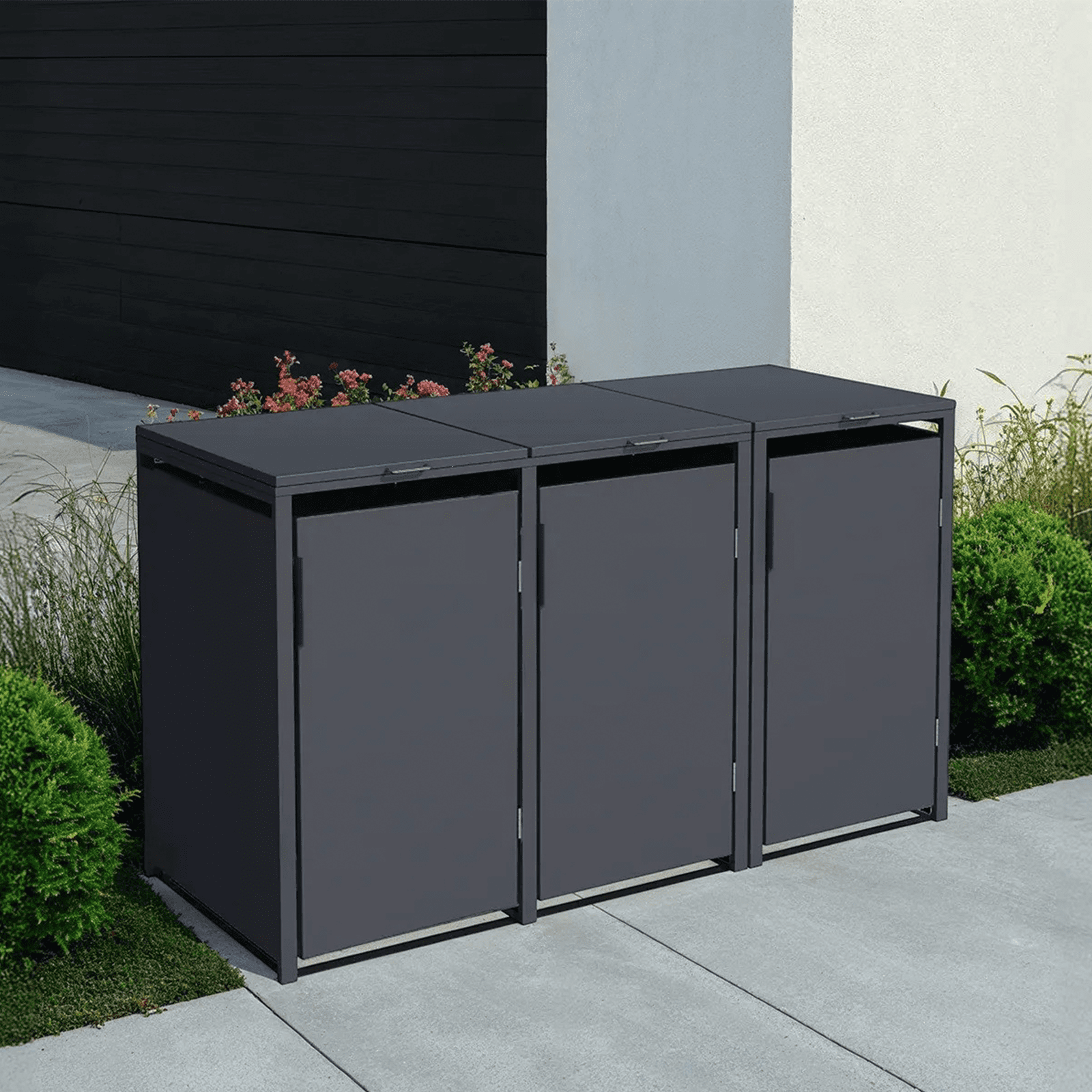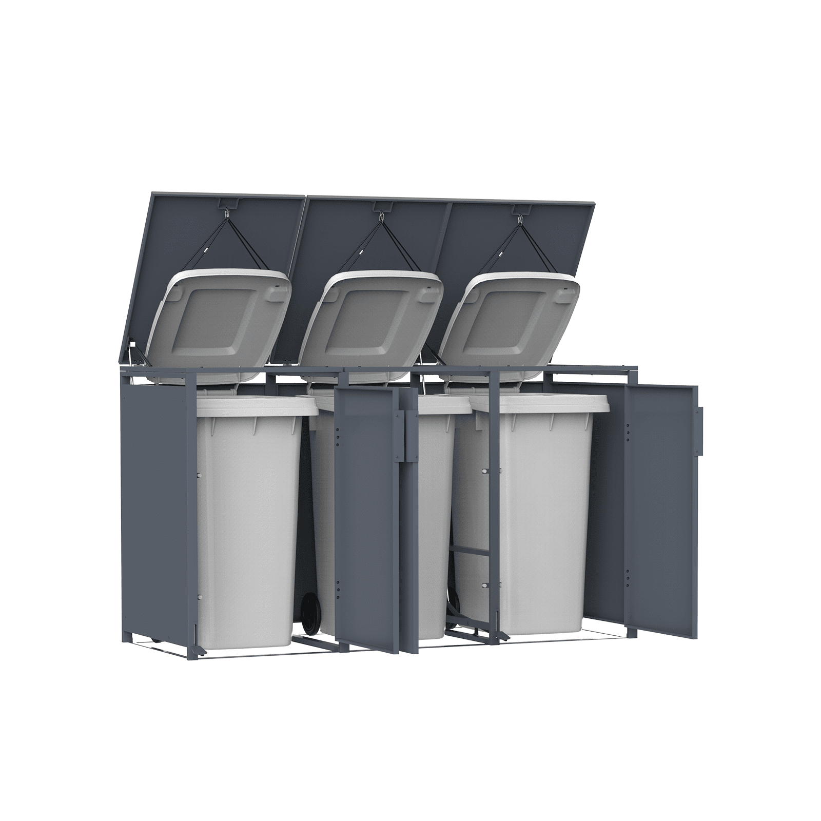 Metalinė konteinerio stoginė HATIS, triguba, su pedalu, antracito