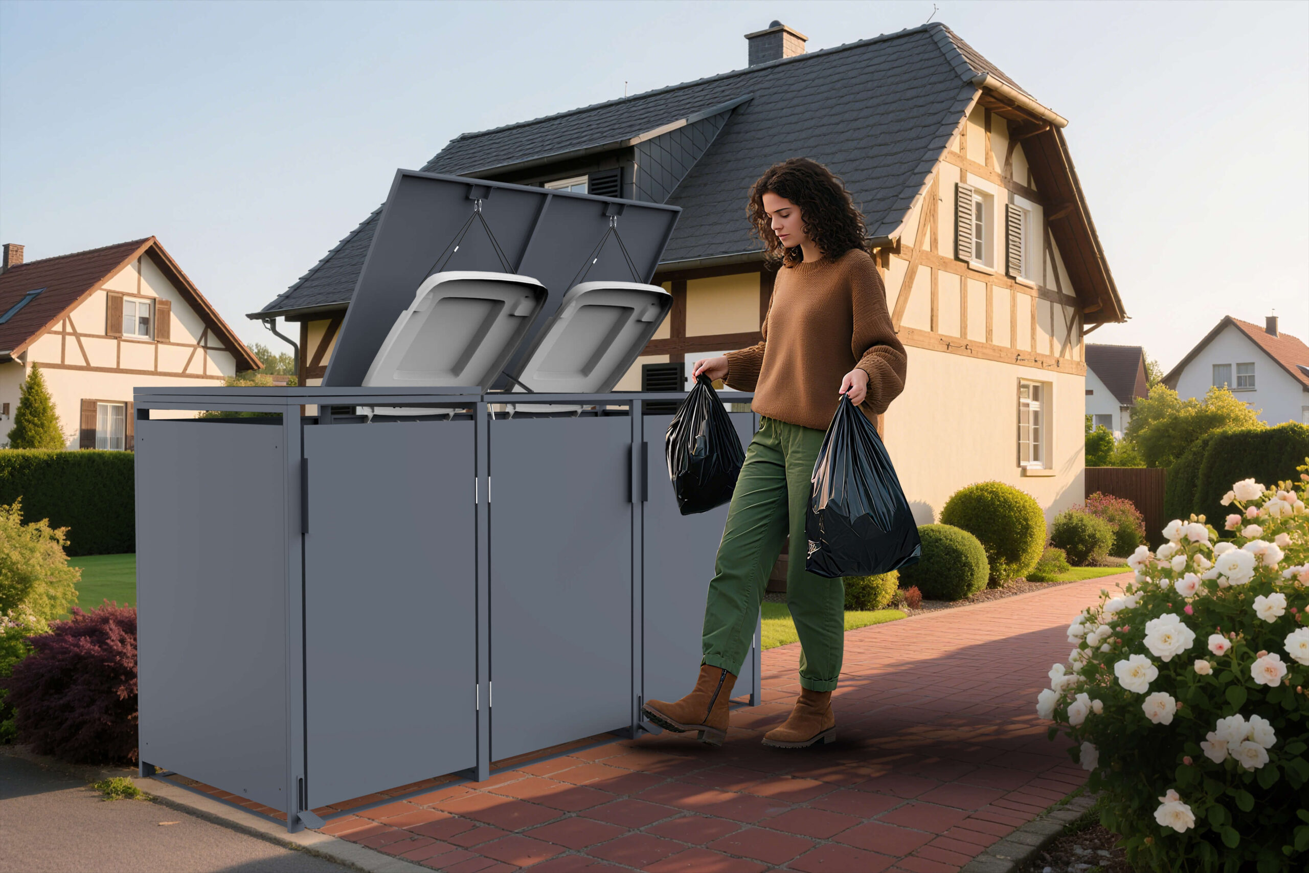 Ši triguba konteinerio stoginė HATIS – tai ilgaamžis ir estetiškas sprendimas trims buitiniams konteineriams paslėpti. Pagaminta iš cinkuotos skardos ir nerūdijančio plieno, ši stoginė užtikrina tvirtumą, ilgaamžiškumą ir puikiai dera prie bet kokios aplinkos. Idealus pasirinkimas ieškantiems tvarkos, patvarumo ir estetikos lauko erdvėje.