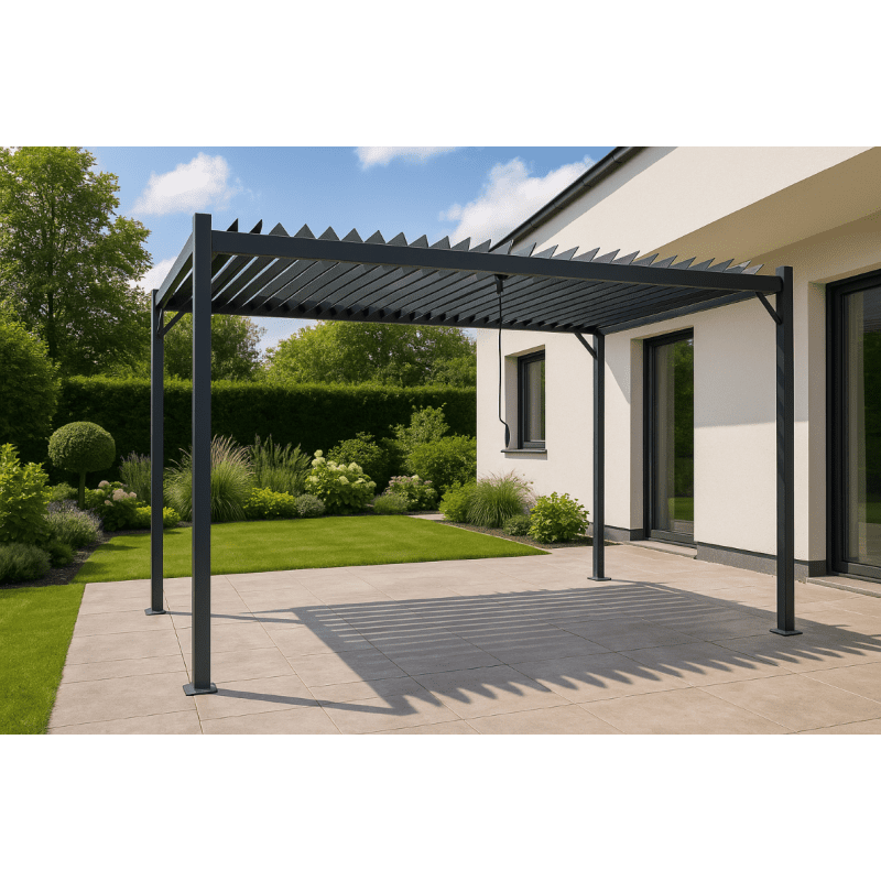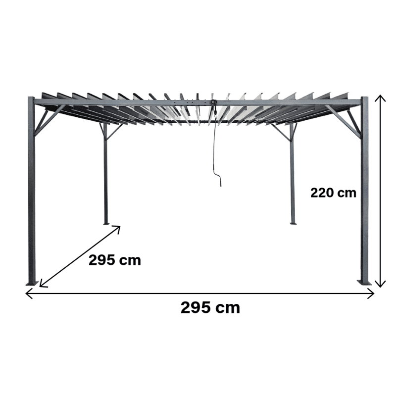 Ši sodo pergola — modernus ir funkcionalus sprendimas Jūsų kiemui ar sodui, sukuriantis jaukią erdvę poilsiui, vakarienėms su šeima ar draugų susibūrimams. Elegantiškas minimalistinis dizainas puikiai derės prie įvairios aplinkos ir taps stilingu akcentu Jūsų lauko erdvėje.