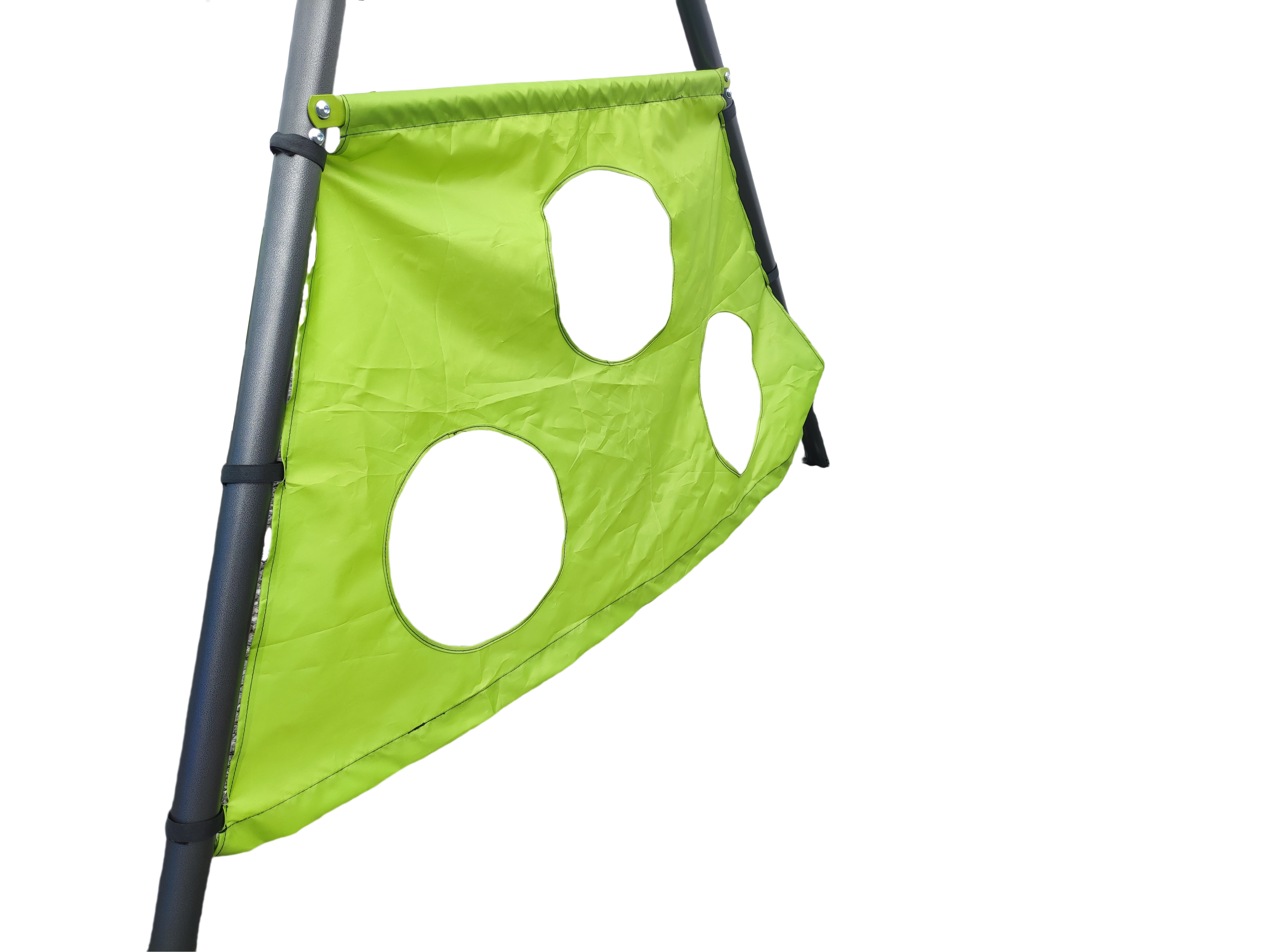 Unikali ir daugiafunkcinė žaidimų erdvė sukurta aktyviam ir įdomiam jūsų vaikų laisvalaikiui gryname ore. Vienu metu gali suptis net keturi nenuoramos. O pasisupus bėgti žaisti su kamuoliu, laipioti kopėtėlėmis, kyboti ant trapecijos ar čiuožinėti nuo čiuožyklos – kiek daug pramogų vienoje vietoje! Žaidimų aikštelės metalinės dalys pagamintos iš cinkuoto plieno su milteliniu būdu dengta apdaila, kuri suteikia žaidimų aikštelei apsaugą nuo įbrėžimų bei korozijos. Sūpynių detalės gaminamos iš tvirto plastiko, tad mažieji galės ilgai džiaugtis žaidimų aikštele savo kieme.
