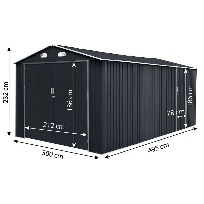 4iQ › Parduotuvė › Lauko sandėliukai › Metaliniai sandėliukai › Metalinis garažas su sandėliuku, 15 m2