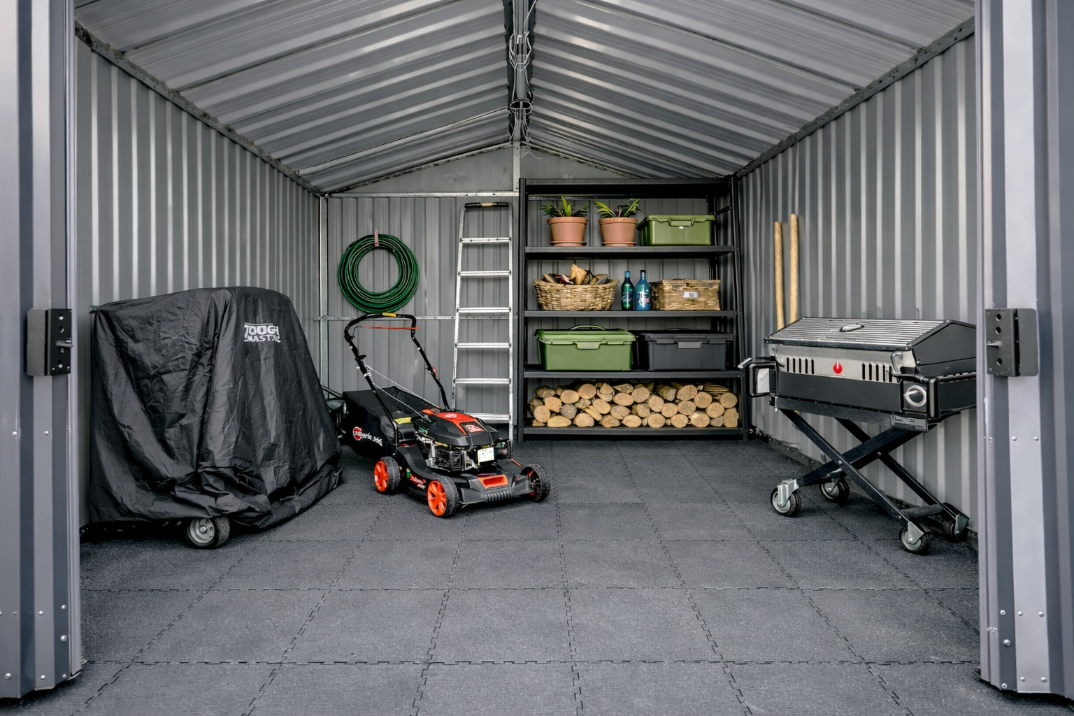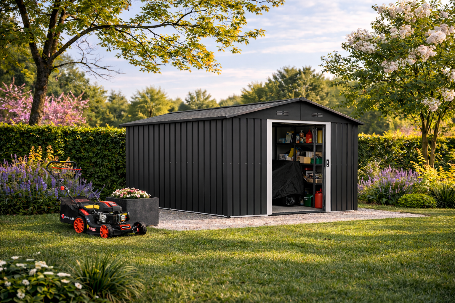 Jo erdvė leidžia lengvai laikyti ne tik įrankius, bet ir įvairius priedus, tokius kaip trąšos, žemių maišai ar laistymo įranga. Sandėliuko viduje galite įrengti lentynas arba stelažus, kurie padės sistemingai suskirstyti daiktus, taip pat suteiks papildomos vietos. Metalinis sandėliukas pagamintas iš cinkuoto plieno, kuris yra atsparus korozijai, UV spinduliams ir drėgmei, todėl jis puikiai tinka bet kokiomis oro sąlygomis. Tai užtikrina gaminio ilgaamžiškumą ir leidžia naudoti jį ilgus metus.