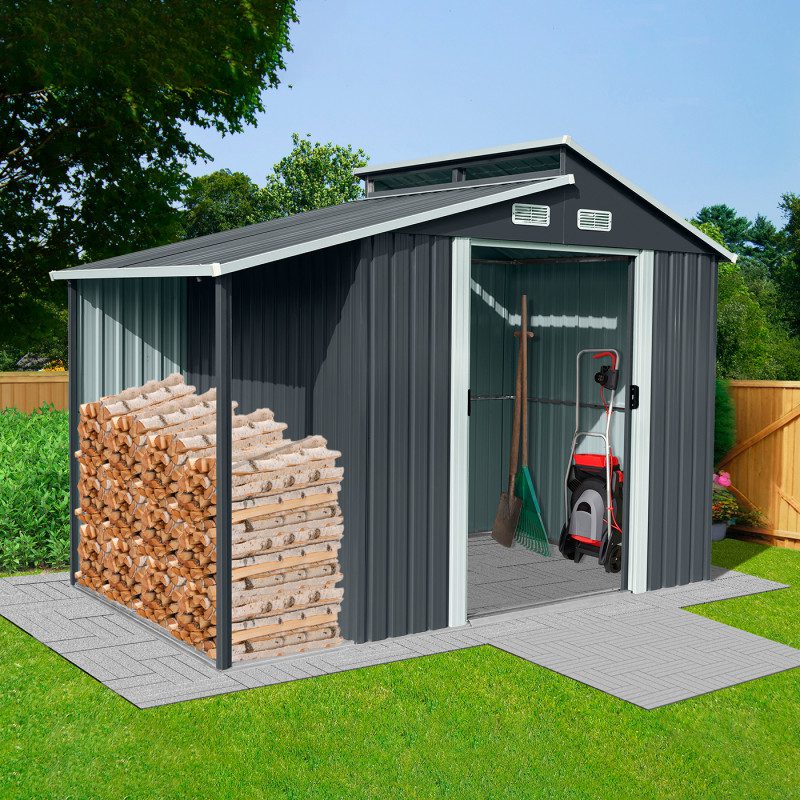 4iQ › Parduotuvė › Lauko sandėliukai › Metaliniai sandėliukai › Metalinis sandėliukas su malkine, 5 m2