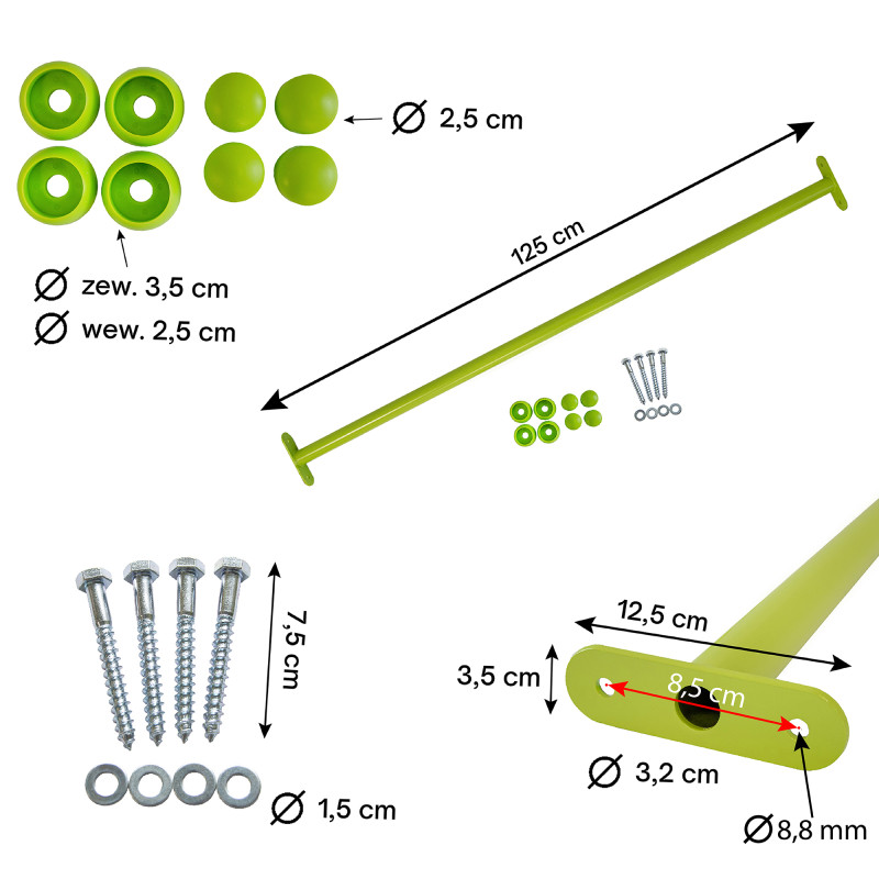 4iQ › Parduotuvė › Sūpynės ir žaidimų aikštelės › Priedai žaidimų aikštelėms › Metalinis skersinis 125 cm, šviesiai žalias