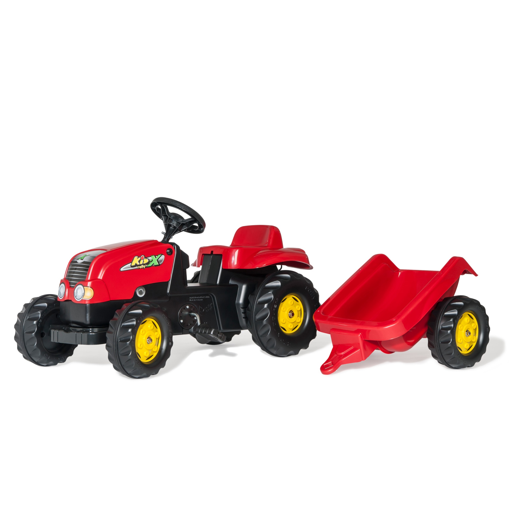 4iQ › Parduotuvė › Transportas vaikams › Vaikiškos mašinėlės › Minamas traktorius su priekaba, Kid-X, raudonas