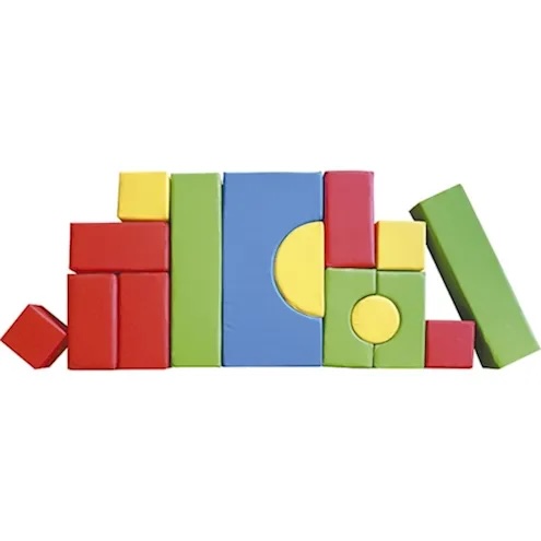 Minkštų kaladėlių rinkinys – tai 15 spalvingų, įvairių formų minkštų statybinių kaladėlių, skirtų vaikams statyti bei lavinti kūrybiškumą ir motorinius įgūdžius. Vaikams suteikiama galimybė laisvai statyti, jungti kaladėles, kurti savo erdves saugiai ir patogiai. Kaladėlės pagamintos iš minkštos medžiagos, todėl tinka mažesnio amžiaus vaikams – suteikia saugų žaidimo lauką be kietų kampų ir aštrių kraštų. Kaladėlių vidus iš kokybiško bei saugaus putplasčio aptrauktas kokybiška dirbtine oda su užtrauktuku, todėl juos galima valyti. Puikiai tinkamas vaikų žaidimų kambariui, darželio erdvei ar kaip pagalbinė priemonė judėjimo / terapijos užsiėmimams.