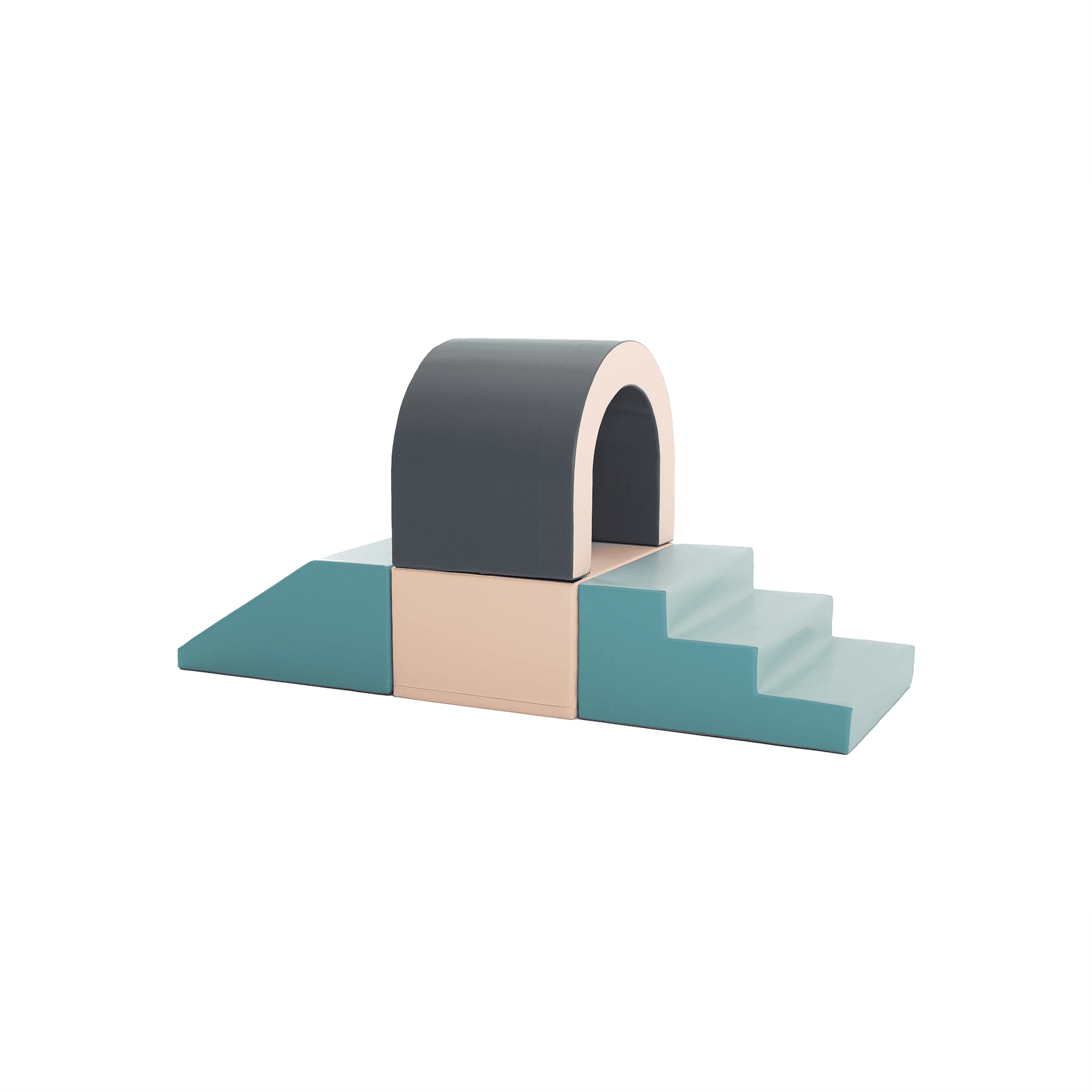 Minkštų kaladėlių komplektas “Tuneliukas”, pastelinis