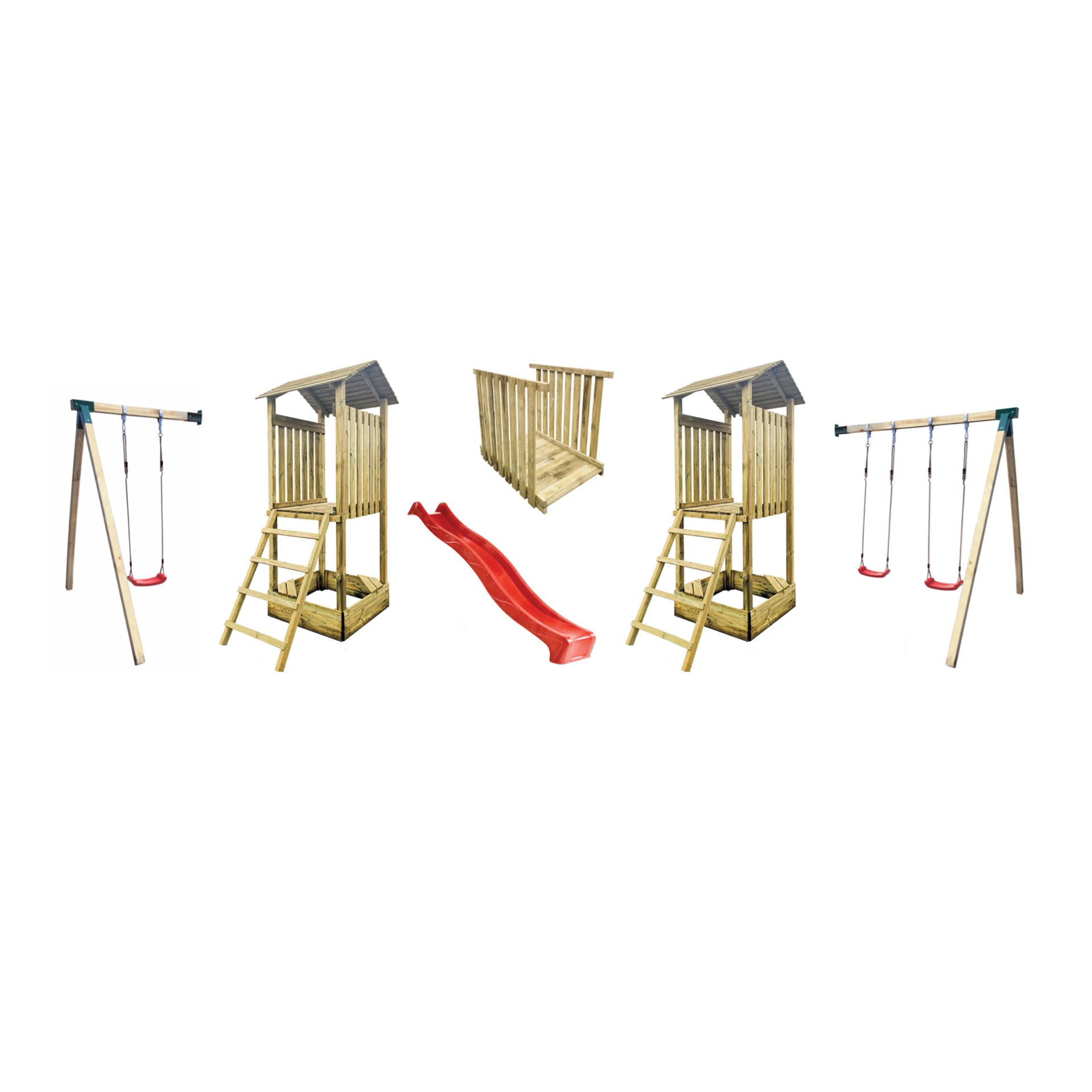 PASTABA! Žaidimų aikštelės pristatomos nesurinktos ir nenudažytos. Sūpynių spalva gali skirtis nuo matomų nuotraukoje.