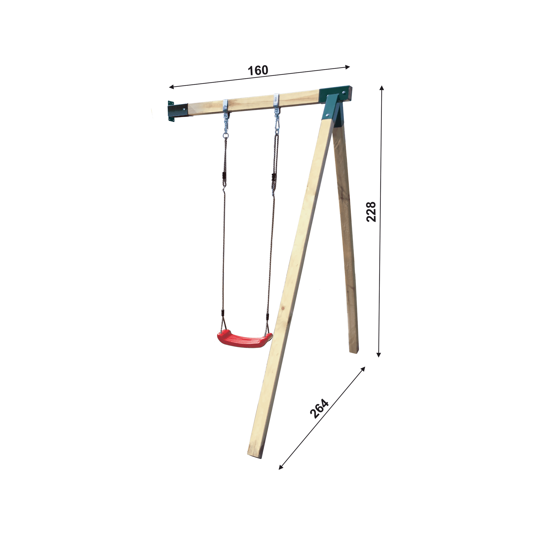 Vaikų žaidimų aikštelės sūpynių modulis C neabejotinai pagyvins vaikų žaidimų erdvę! Šį sūpynių modulį galima tvirtinti prie vaikų žaidimų namelio ar sujungti su kitais mūsų siūlomais mediniais vaikų žaidimų aikštelių moduliais. Šis sūpynių modulis puikiai tinka su mediniais bokšteliais (moduliai A ir B). Komplektacijoje surasite: medinė konstrukcija, tvirtinimo elementai, pakabinamos plastikinės sūpynės.