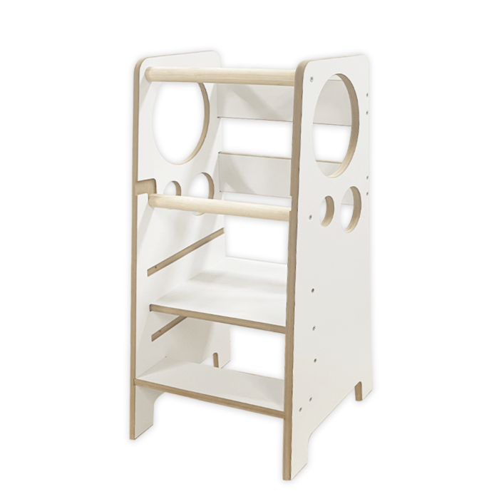 Pagamintas laikantis Montessori principų, bokštelis suteikia vaikui galimybę tyrinėti pasaulį savo tempu, lavina koordinaciją, pusiausvyrą ir pasitikėjimą savimi. Švelnaus dizaino ir neutralių spalvų dėka jis harmoningai dera bet kurioje namų erdvėje – vaiko kambaryje, svetainėje ar žaidimų zonoje.