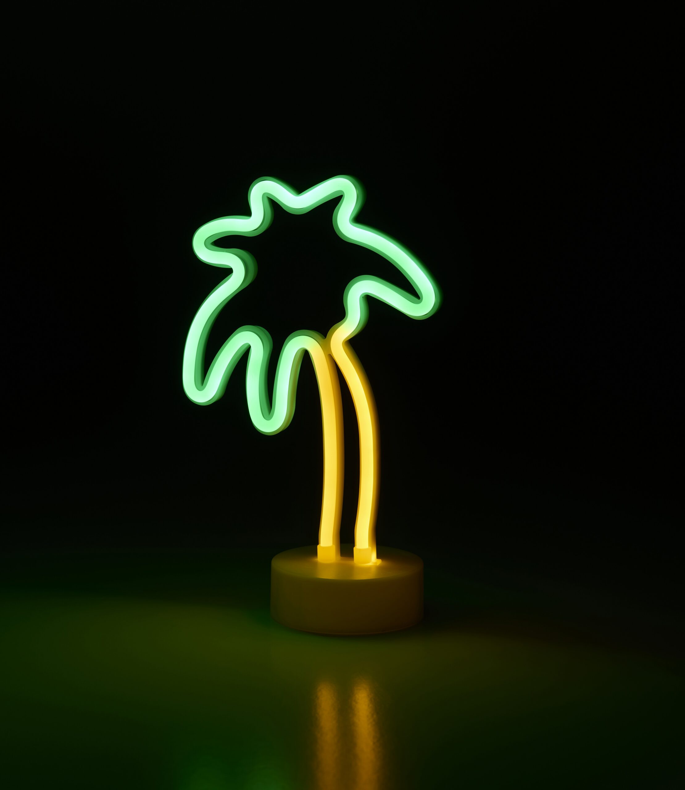 Laikas atnaujinti namus bei suteikti interjerui daugiau spalvų, tai padaryti itin paprasta net su minimaliomis pastangomis. Ieškantiems išskirtinio akcento namuose, ši neoninė LED lempa yra puikus pasirinkimas. Palmės formos lempa suteiks kambariui išskirtinumo ir džiugins savo smagiu dizainu. Patogaus dydžio lempa gali būti statoma ant palangės, stalo, lentynos ar komodos. Taip pat šią palmės formos lempą galima pritaikyti ir vaikų žaidimų nameliams, taip suteikiant jiems žaismingumo. Neoninė palmė skleidžia malonią žalią bei geltoną šviesą suteikdama kambariui jaukumo bei spalvingumo. Šiai lempai elektros lizdas nėra reikalingas ji veikia su baterijomis. Tinka 3 x AA baterijos – komplektacijoje nėra.