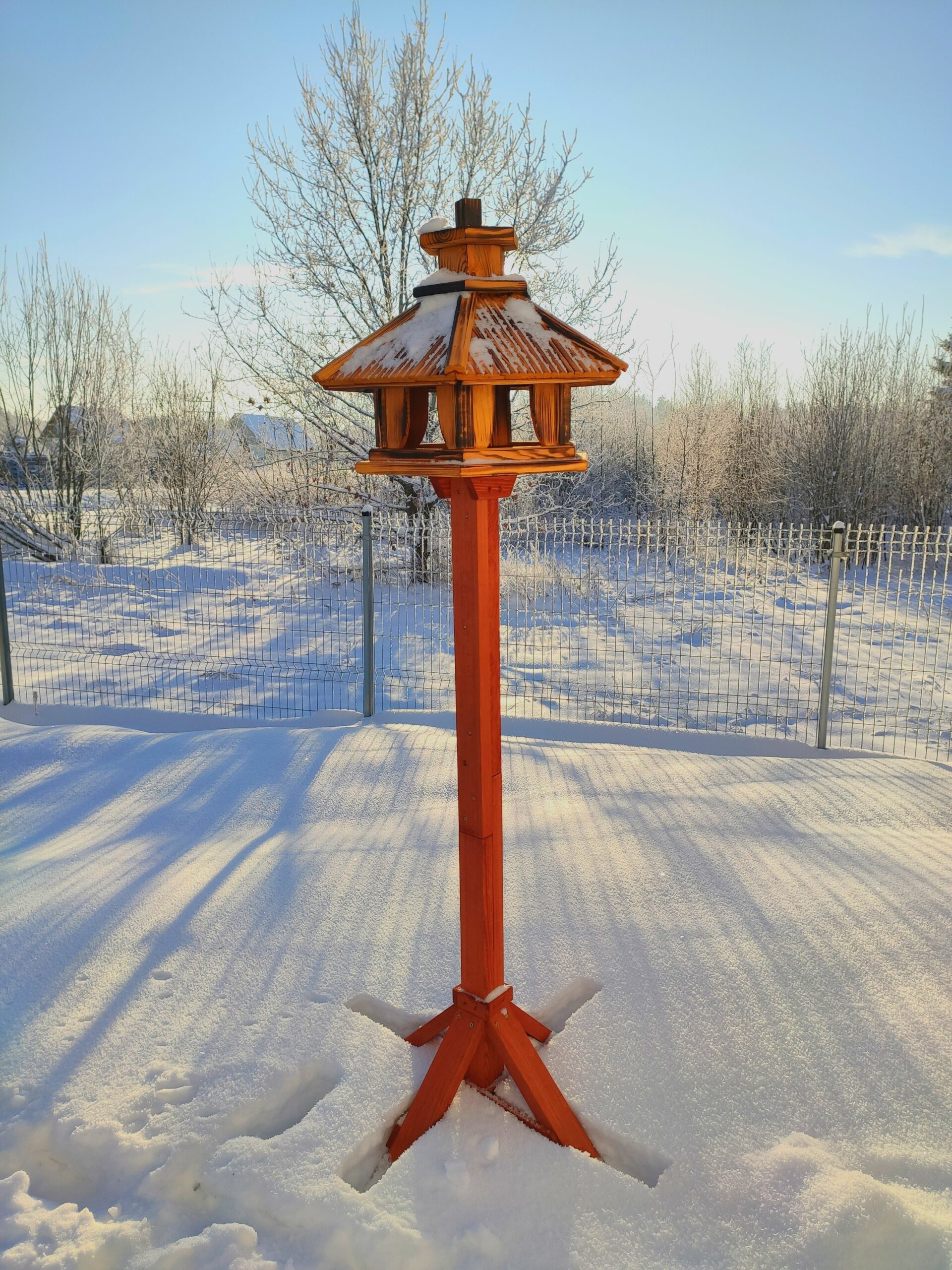 Ši įspūdingo dizaino lesyklėlė pritrauks paukščių dėmesį, o Jūsų kieme ar sode išsiskirs savo dizainu, taps puikia sodo dekoracija, bei suteiks kiemui gyvybės visais metų laikais. Kiekvienam paukščių mylėtojui patinka stebėti linksmai lesančius mielus paukščius, o juos lesinti itin svarbu šaltuoju metų laiku, kai paukščiams ypač stinga maisto. Patvari ir ekologiška paukščių lesykla su stogeliu, pagaminta iš spygliuočių medienos, atspari oro sąlygoms ir gali būti naudojama ištisus metus. Lesykloje yra didelė maitinimo platforma, o stogas apsaugo, kad maistas būtų sausas. Tiesiog nuimkite dangtelį, pridėkite lesalo į viduryje paliktą ertmę ir paukščiukai mielai apsilankys kiekvieną dieną papuotauti!