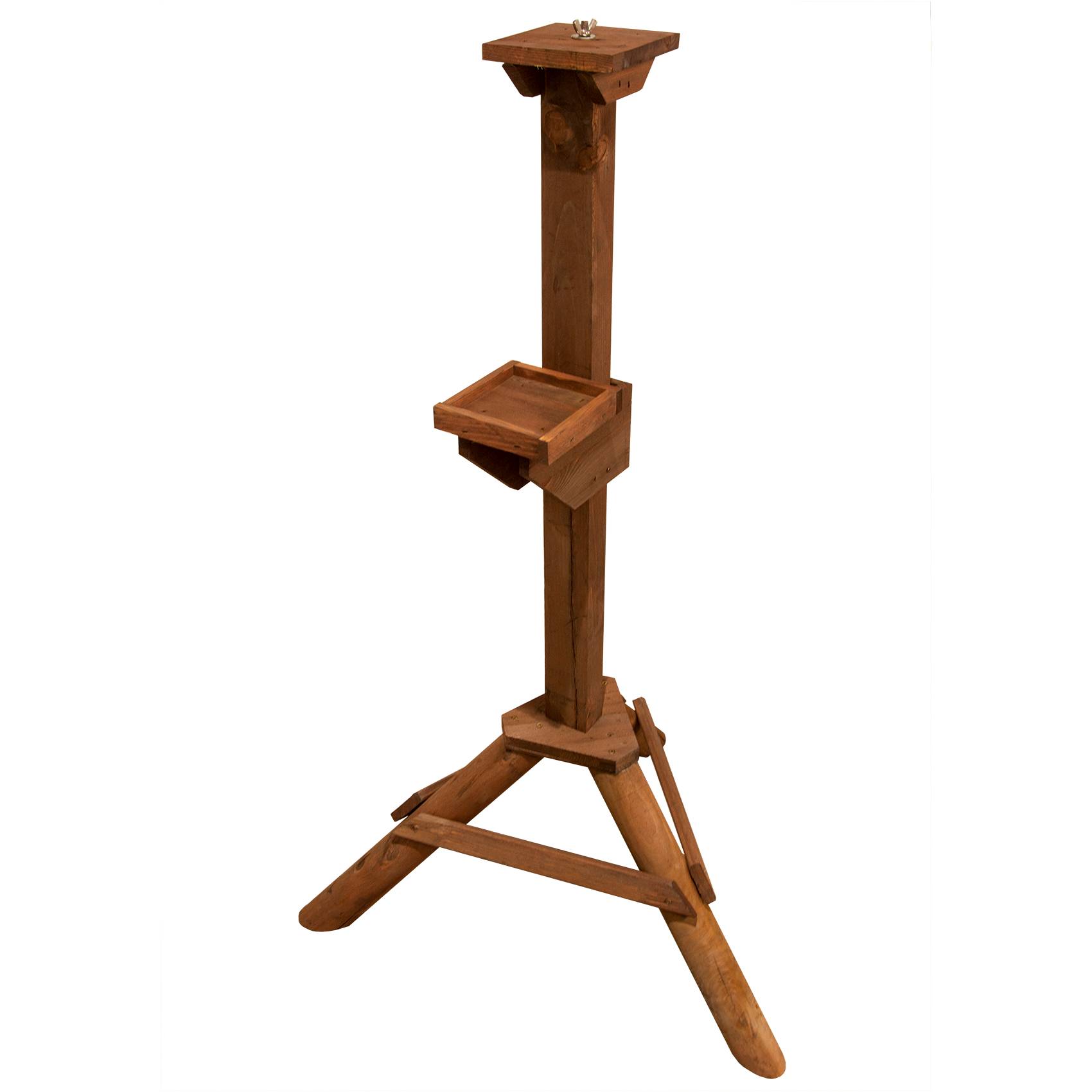 Medinis stovas lesyklėlei su papildoma lentynėle, rudos spalvos
