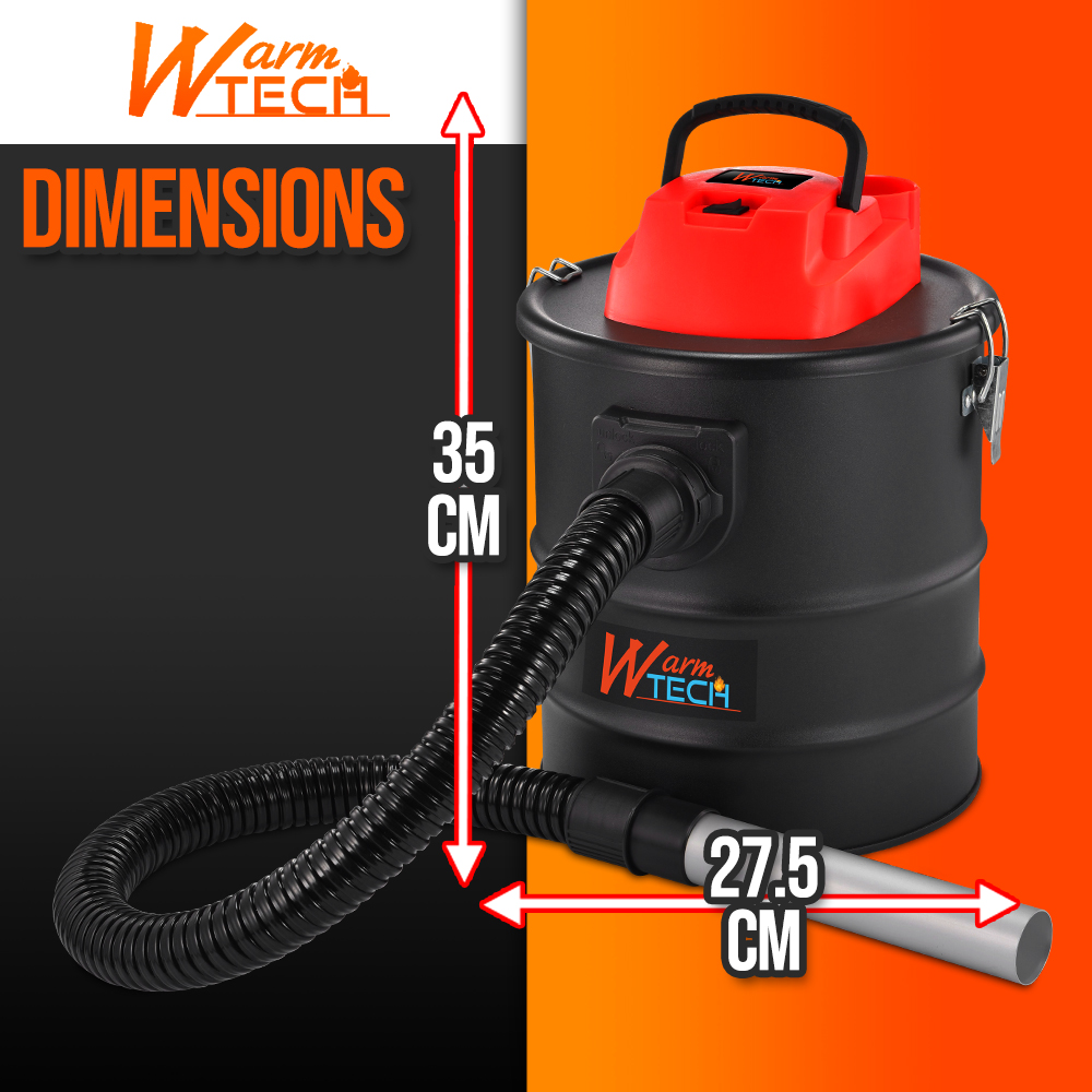 Šis Warm Tech pelenų siurblys su 800 W elektriniu varikliu ir HEPA filtru skirtas šaltiems pelenams iš židinių, granulėmis ar malkomis kūrenamų krosnių ir kepsninių siurbti.
