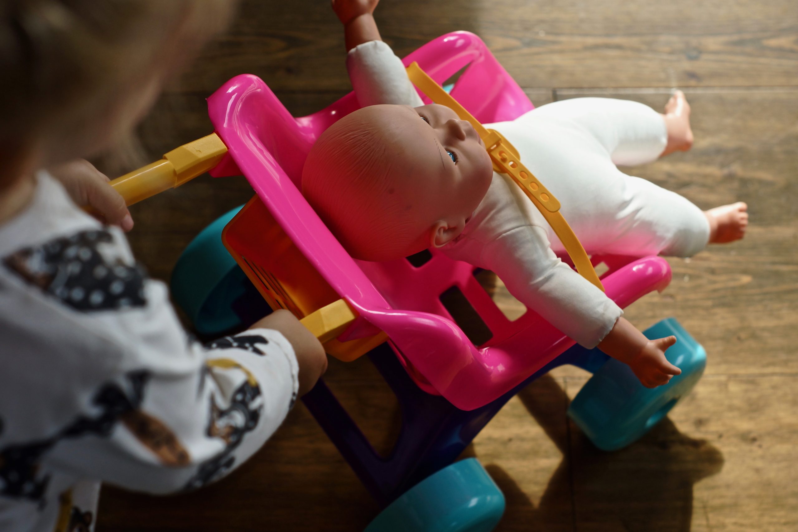 Puikus vežimėlis su saugos dirželiu, kad neiškristų lėlytė net labai duobėtame kelyje. Produktas pasižymi patvaria, saugia konstrukcija ir sodriomis spalvomis.