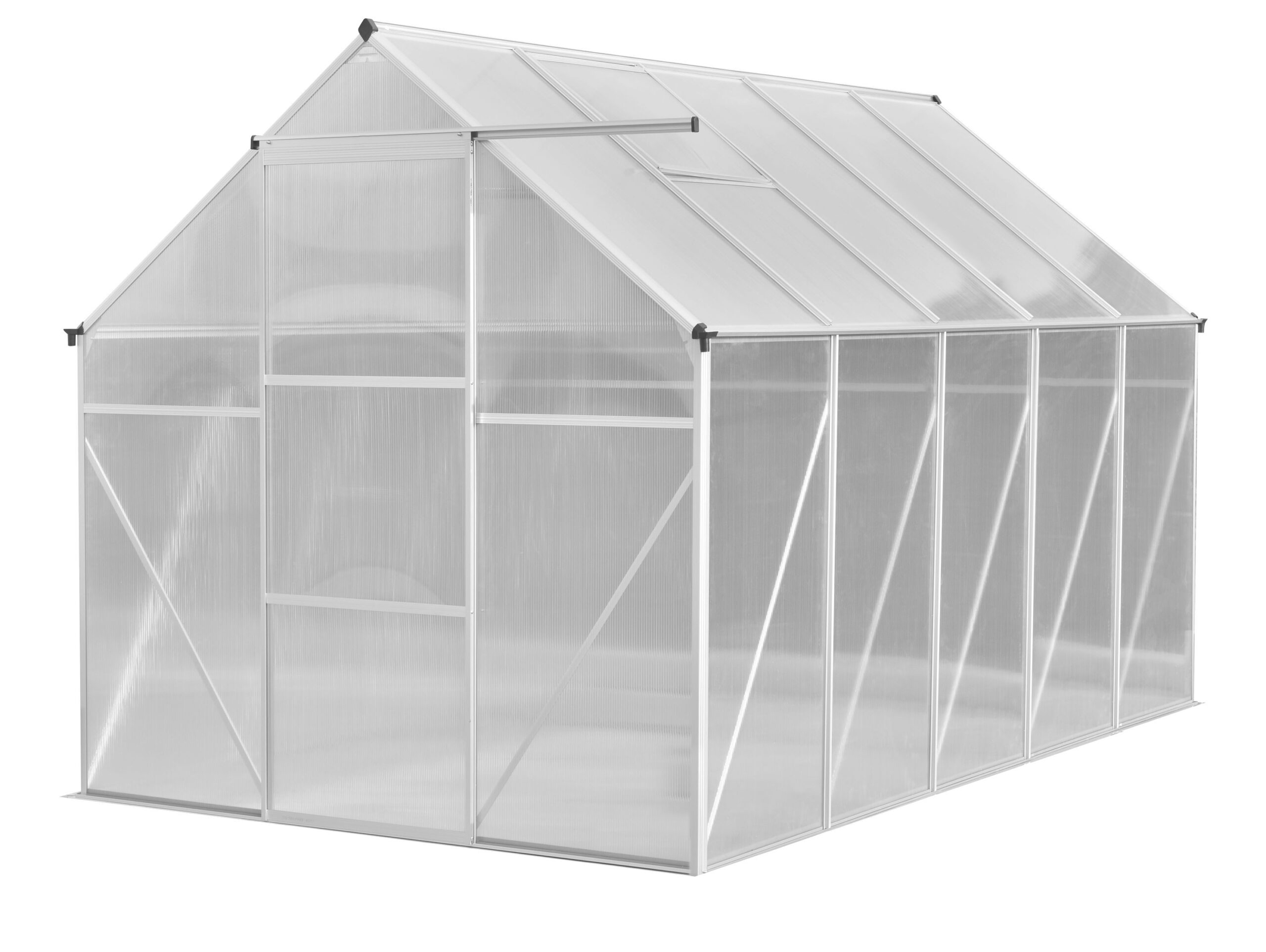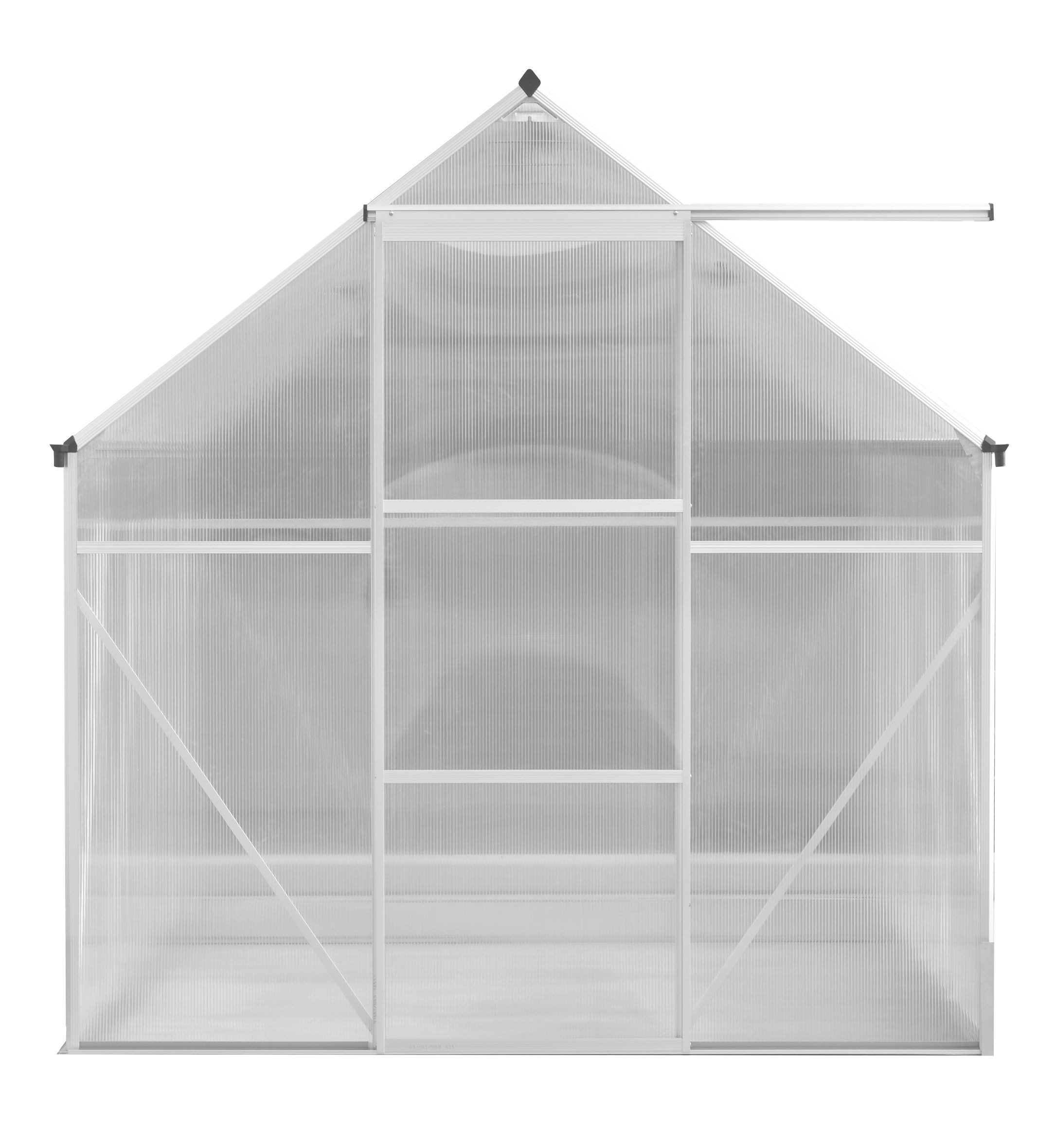 Šiltnamis pagamintas iš tvirto polikarbonato, o rėmas pagamintas iš sidabro spalvos aliuminio profilių. Šis šiltnamis turi stundomas duris patogesniam naudojimui. Rekomenduojame šiltnamį įtvirtinti grunte, kad siekiant maksimalaus konstrukcijos stabilumo. Svarbu periodiškai valyti stogą nuo sniego ir lapų, kad būtų išvengta žalos dėl perkrovos.
