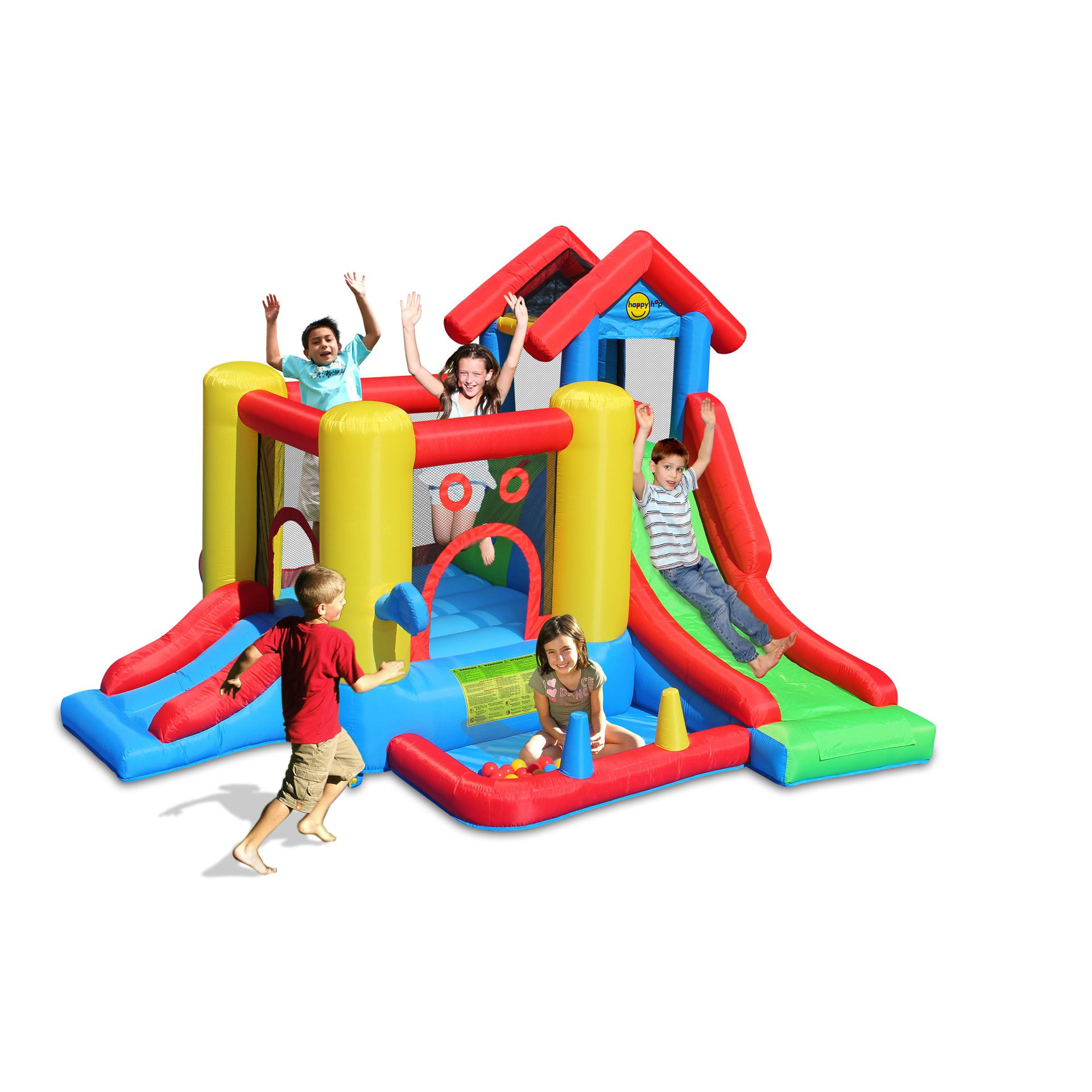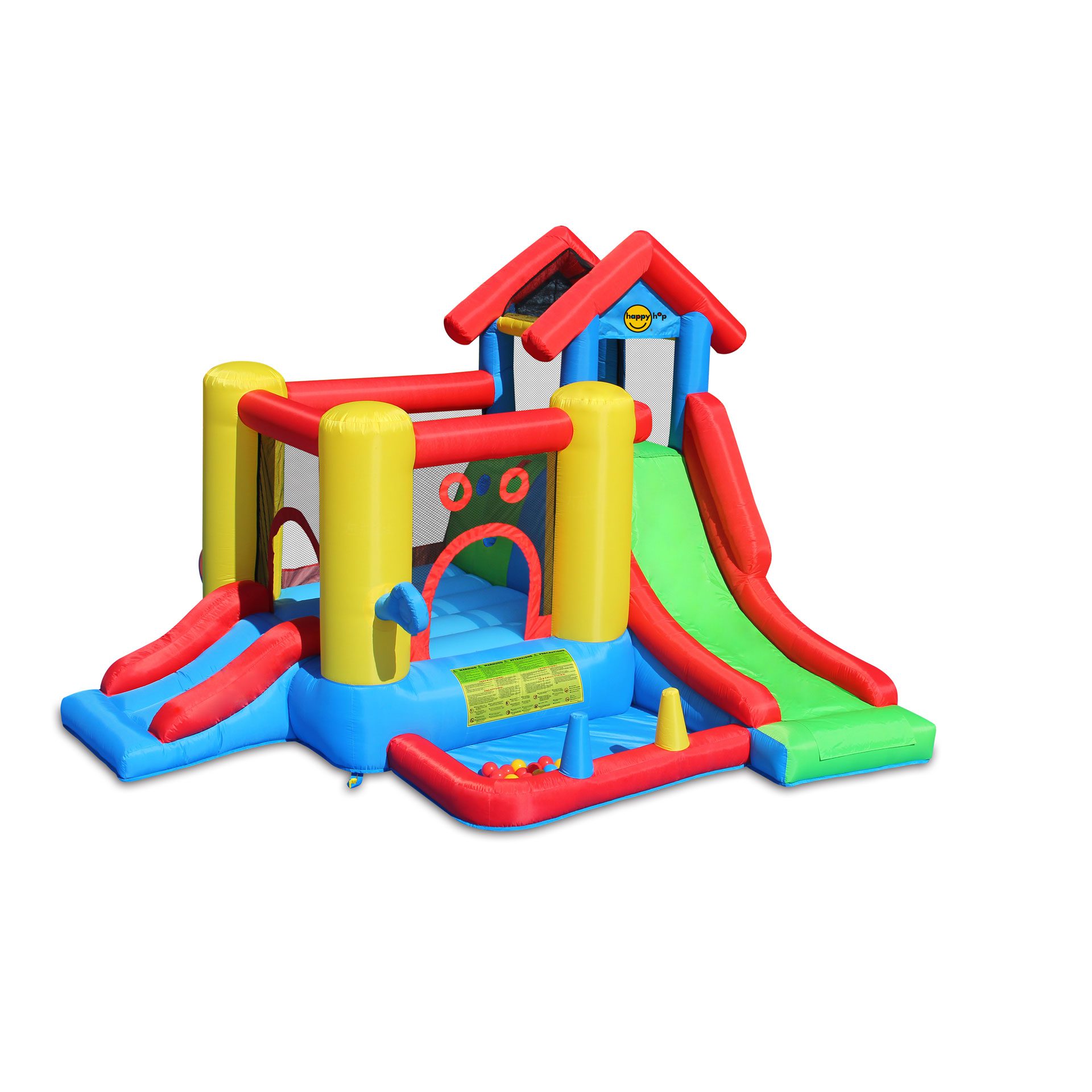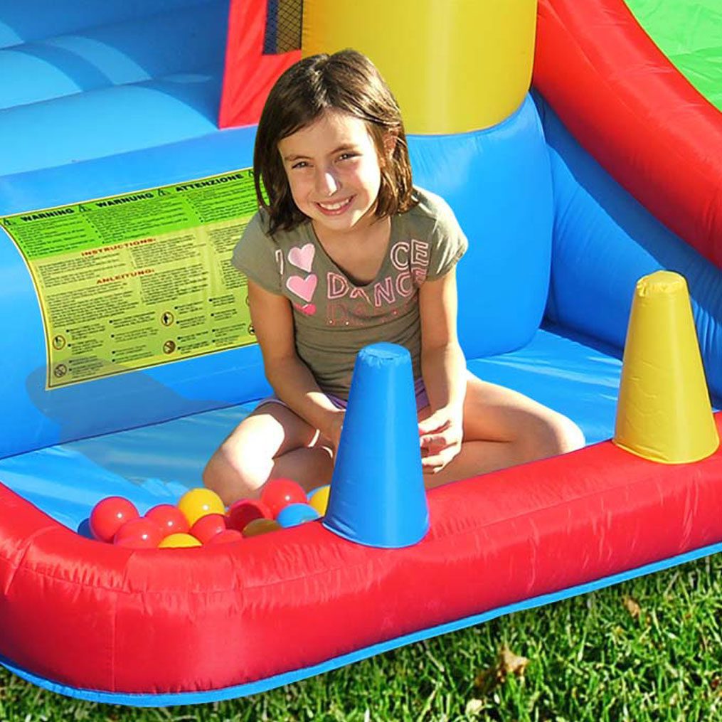 Pasiruoškite spalvotoms linksmybėms. Šis net septynių dalių pripučiamas batuto komplektas leis mėgautis daugybe žaidimų variantų. Net dvi skirtingų aukščių čiuožyklos, kamuoliukų jūra, mažiesiems leis kurtį įvairiausius žaidimų scenarijus bei linksmai judėti.