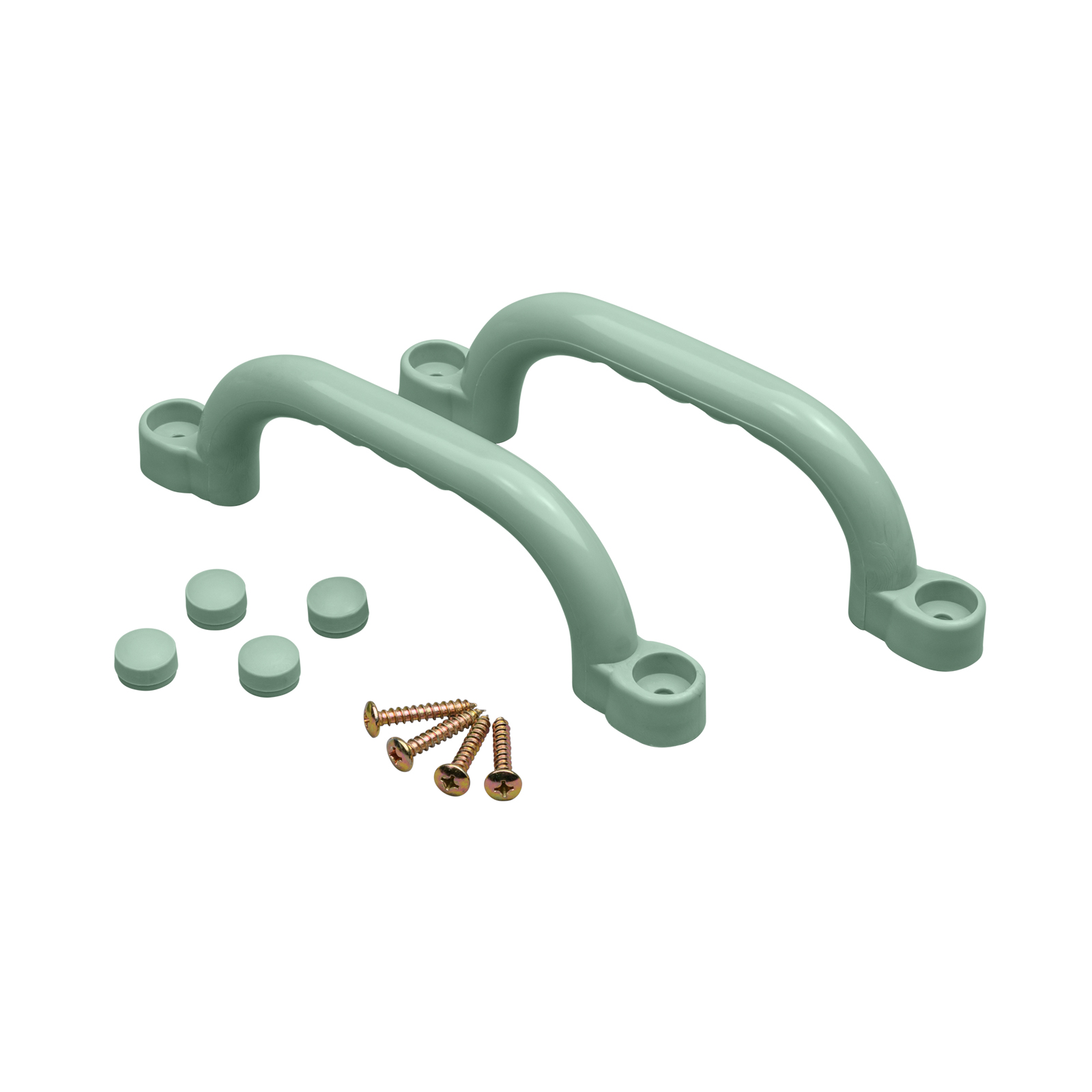 Pastelinės žalios spalvos plastikinės rankenėlės puikus spendimas visiems, kuriems rūpi saugios žaidimų akimirkos. Tvirta, saugu ir funkcionalu. Montuojamos ant bet kokios medinės konstrukcijos siekiant padėti vaikams saugiai jaustis žaidimų aikštelėje.