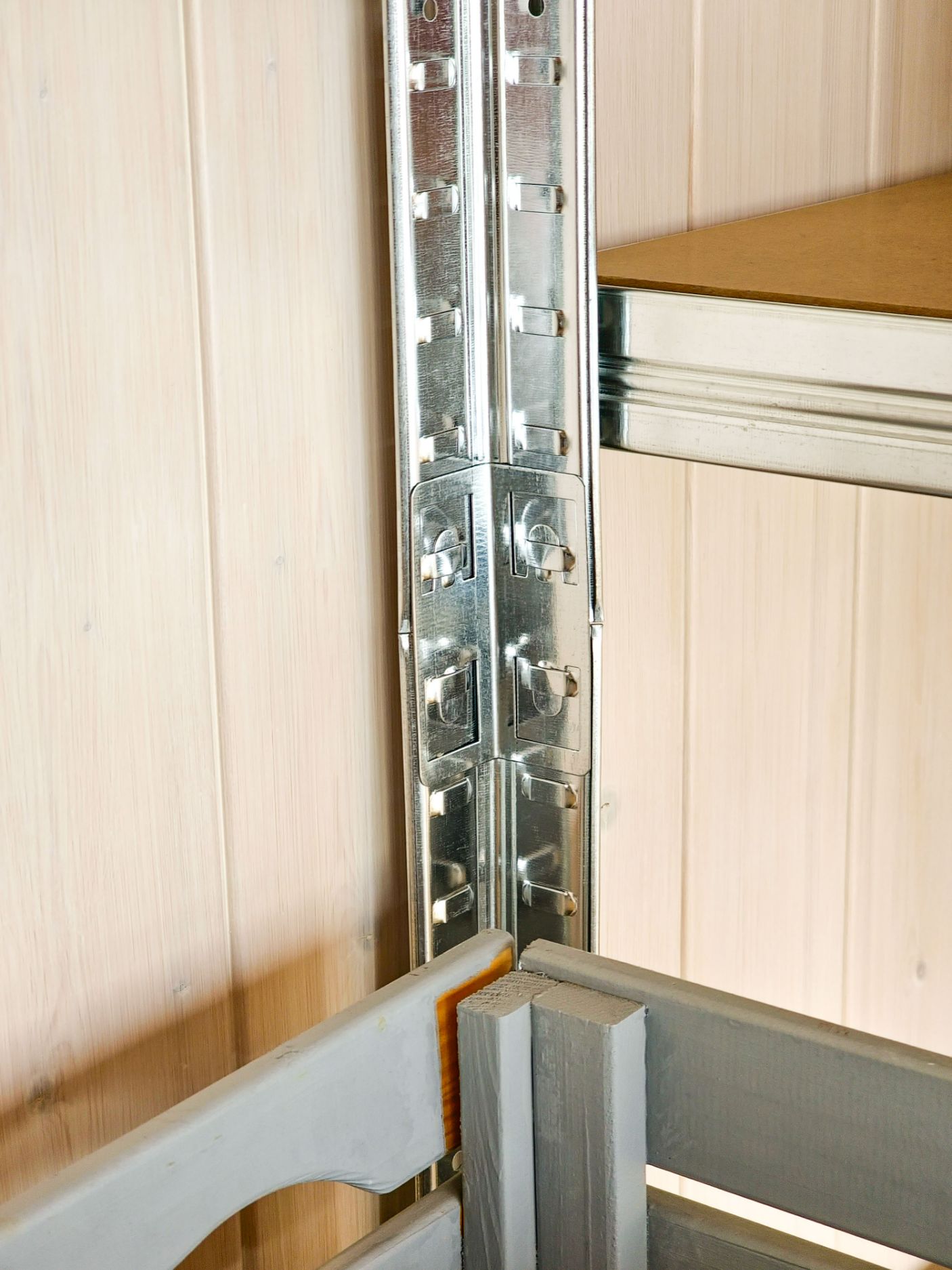 - Tvirta plieno konstrukcija: Lentyna pagaminta iš kokybiško cinkuoto plieno, kuris užtikrina jos stabilumą ir ilgaamžiškumą. Cinkuoto paviršiaus danga apsaugo nuo rūdžių ir korozijos, todėl lentyna ilgai išlieka patikima ir estetiška.