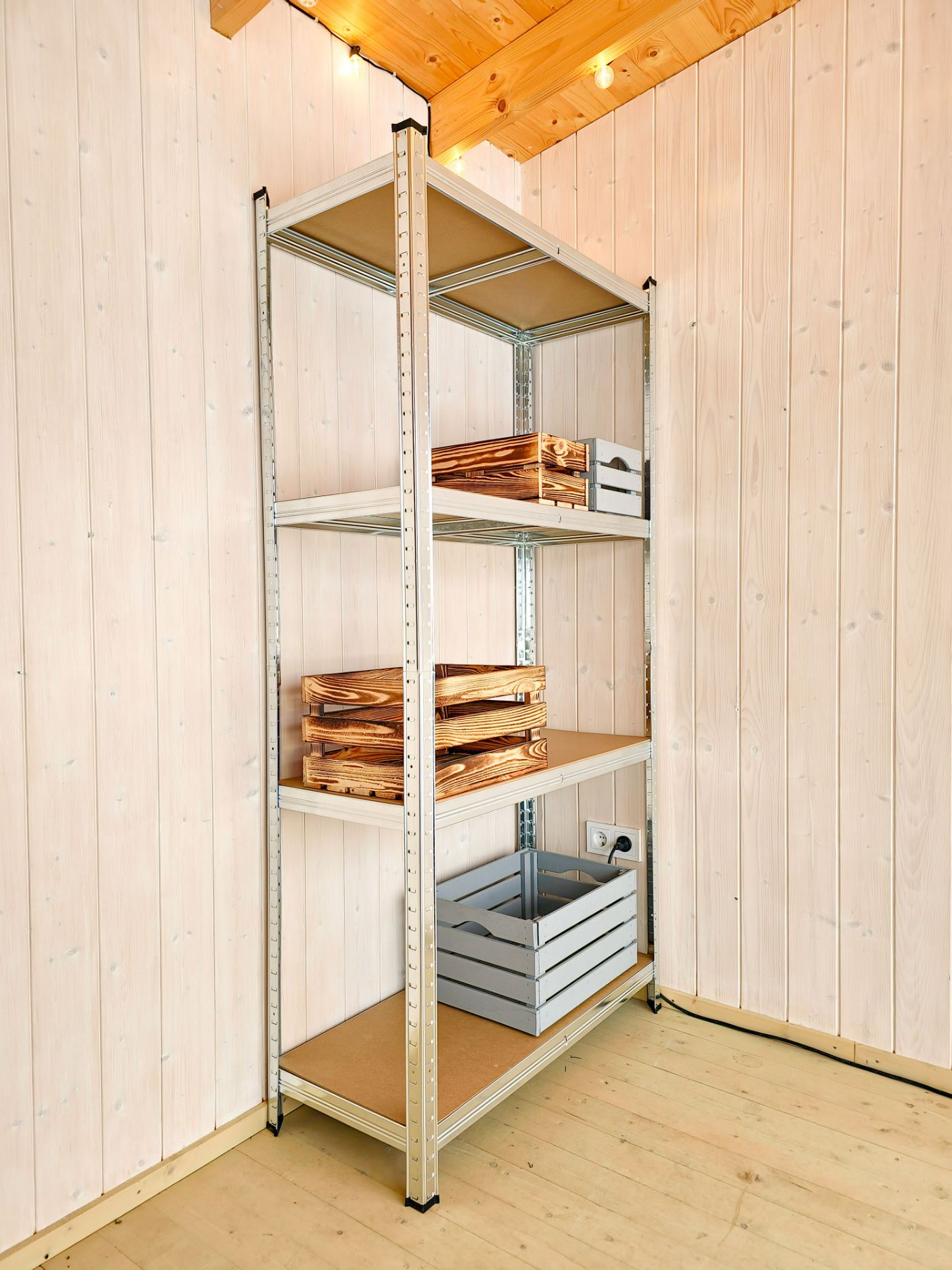 Sandėliavimo lentynos – plačiai pritaikomas bei itin patogus daiktų laikymo sprendimas. Ši aukštos kokybės metalinė sandėliavimo lentyna – praktiškas būdas rūšiuoti daiktus, padės palaikyti tvarką ir efektyviai išnaudoti turimą erdvę namuose, garažuose, sandėliukuose ar kitose patalpose. Tvirtas cinkuoto plieno rėmas ir 125 kg lentynų apkrova užtikrina, kad lentyna gali atlaikyti įvairaus svorio daiktus. Lentyna pasižymi funkcionalumu, patikimumu ir stilingu dizainu. Statant keletą sandėliavimo lentynų vieną šalia kitos, galima greitai sukurti vientisus daiktų laikymo ir sandėliavimo sprendimus, o jas surinkti yra itin paprasta ir be jokių papildomų įrankių.
