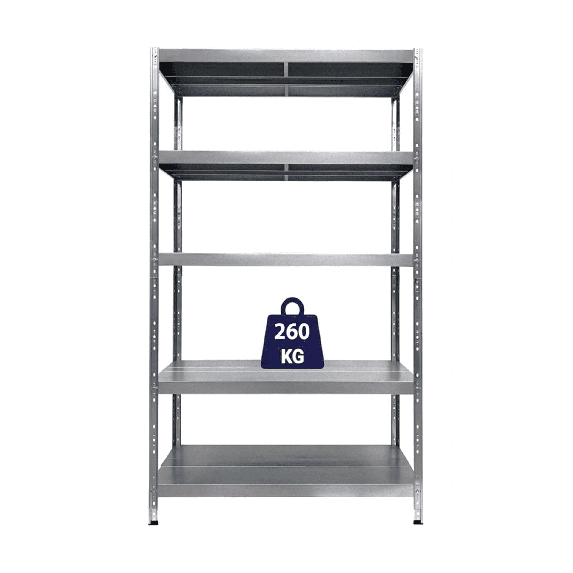 - Apkrova: Kiekviena iš penkių lentynų gali atlaikyti iki 260 kg, todėl ši lentyna yra ideali tiek sunkesniems, tiek lengvesniems daiktams laikyti. Tai puikus sprendimas tiek smulkesniems daiktams, tiek didesniems įrankiams ar kitoms sunkioms prekėms.