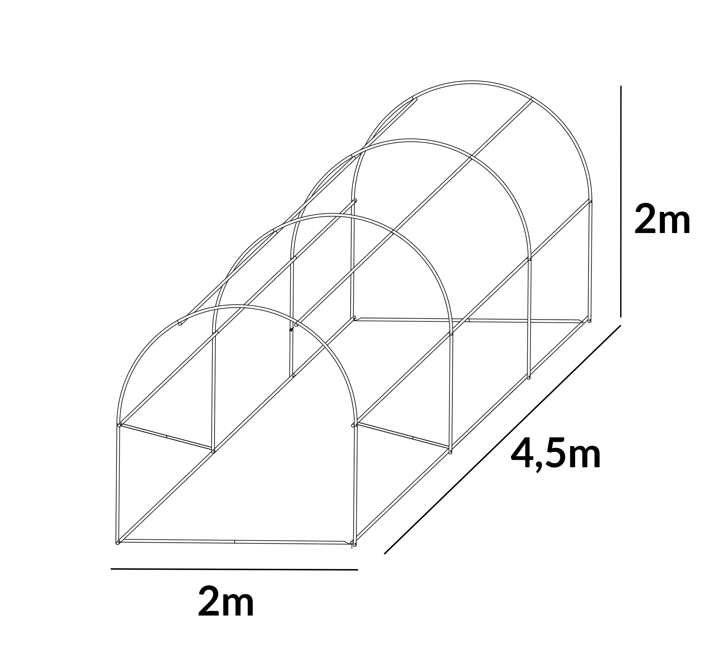 Šiltnamio rėmas, 9 m2, 2 x 4,5 m