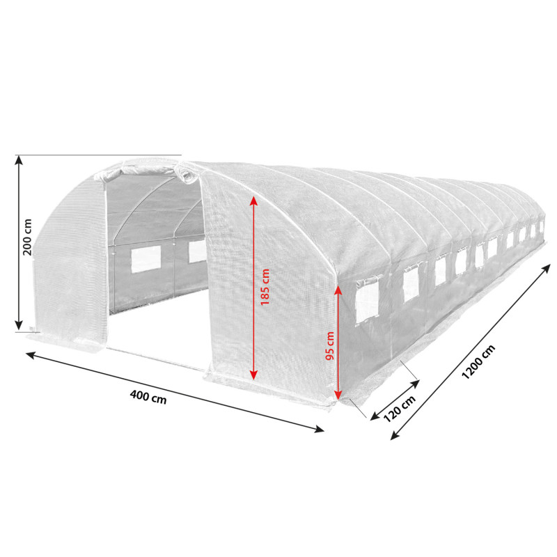 Šiltnamis su armuota plėvele, 48 m2, 4×12 m, baltas