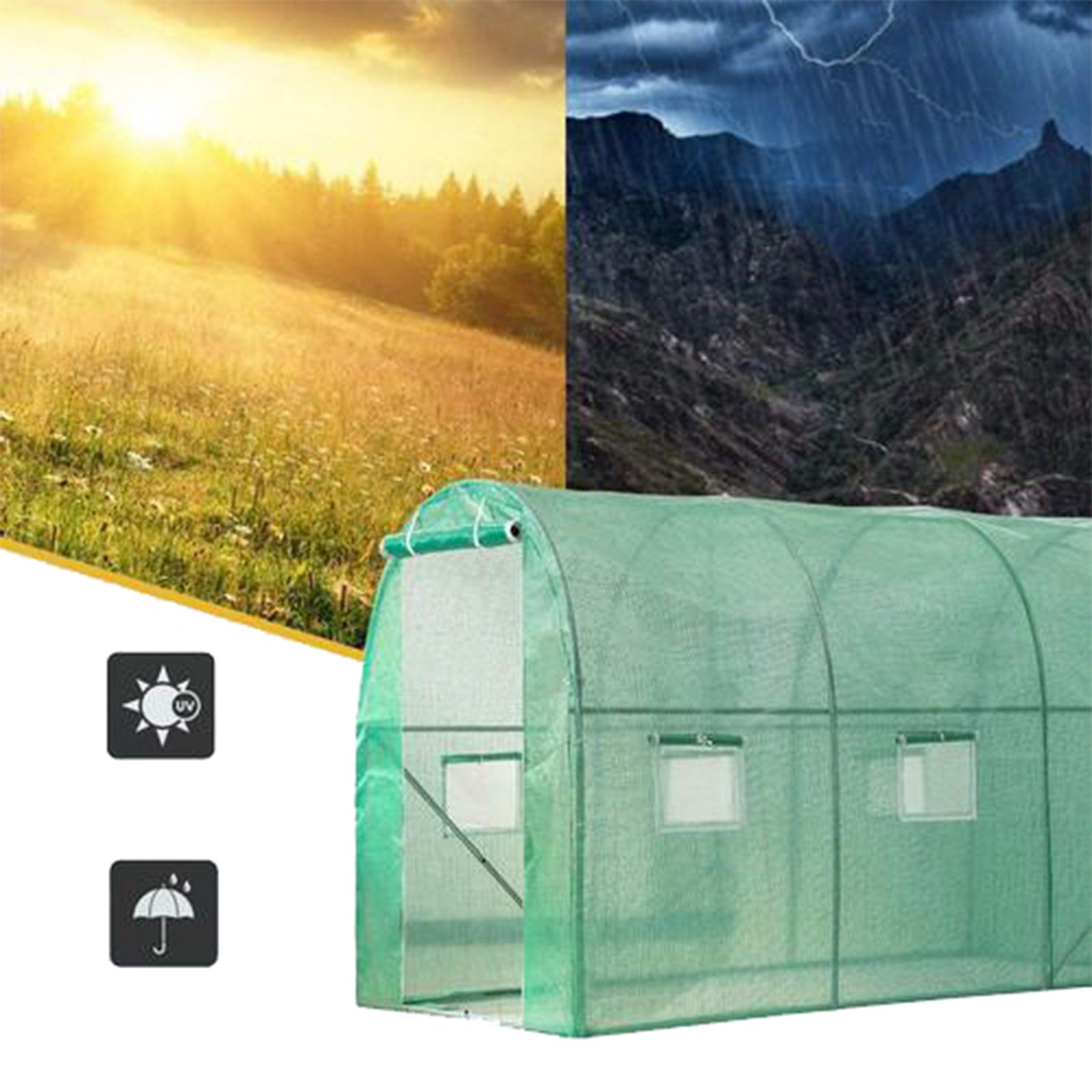 Šiltnamio rėmas pagamintas iš tvirtų plieninių vamzdžių dengtų milteliniu būdu. Aukštos kokybės PE medžiaga su UV6 filtru, apsauganti augalus nuo kenksmingų ultravioletinių spindulių ir užtikrinanti tvirtumą. Šiltnamis turi šešis langus, leidžiančius reguliuoti oro srautą, ir ritinines duris, kurios suteikia lengvą prieigą ir papildomą ventiliaciją. Patikimi užtrauktukai užtikrina lengvą ir saugų uždarymą. Konstrukcija yra paprasta ir greitai montuojama, todėl šiltnamis bus paruoštas naudoti be didelių pastangų.