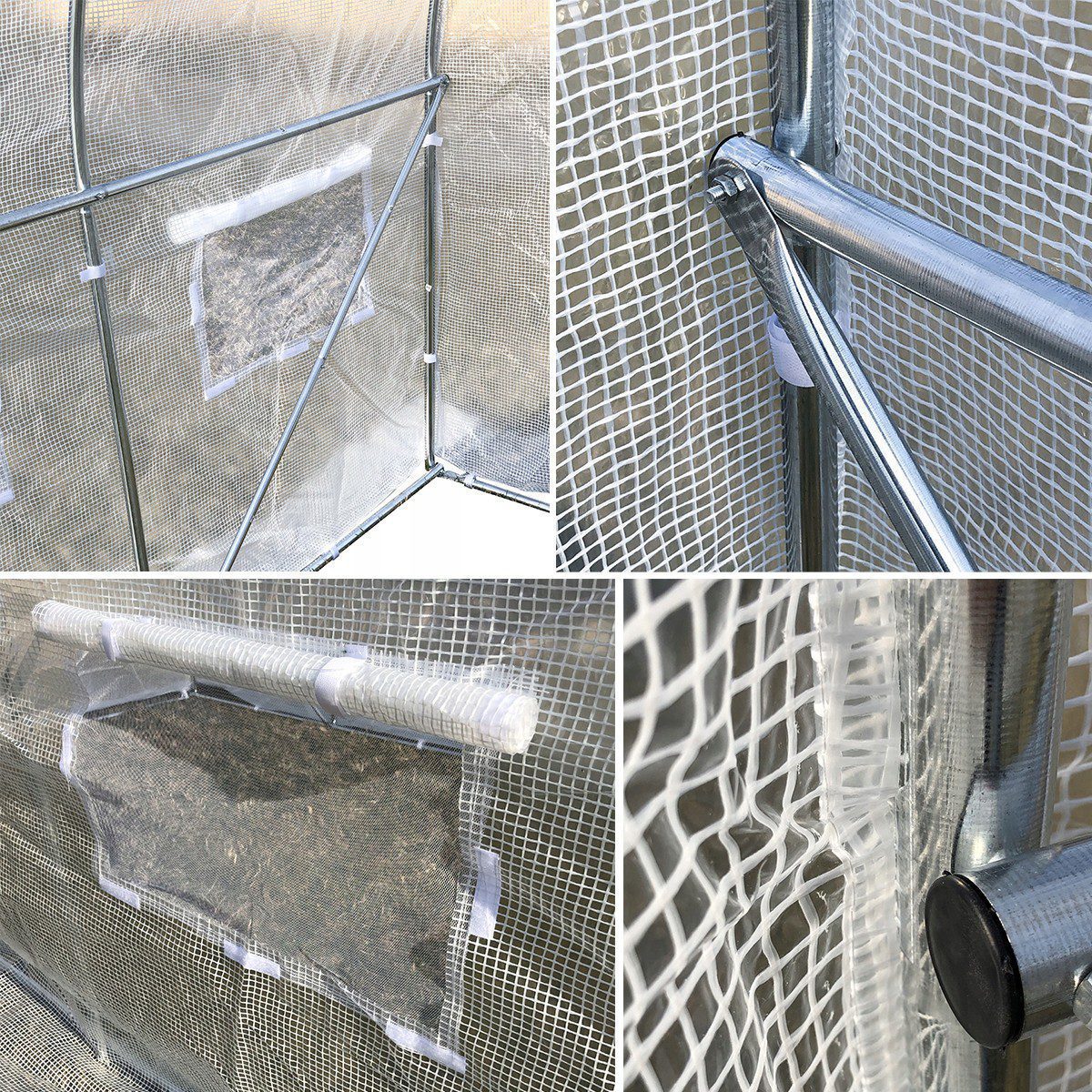 Cinkuoto plieno rėmas su papildomais apsauginiais kaiščiais užtikrina šiltnamio konstrukcijos stabilumą. Šiltnamio konstrukcija itin lengva bei mobili, todėl nesudėtingai galėsite jį perkelti į Jūsų norimą vietą. Montavimo metu rekomenduojame užpilti šiltnamio kraštus, kurie yra 20 cm ilgio, dirvožemio sluoksniu. Tai užtikrins, kad konstrukcija būtų stabili bei atspari nepalankioms oro sąlygoms. Šiltnamio komplektacijoje yra montavimo varžtai be aštrių briaunų.