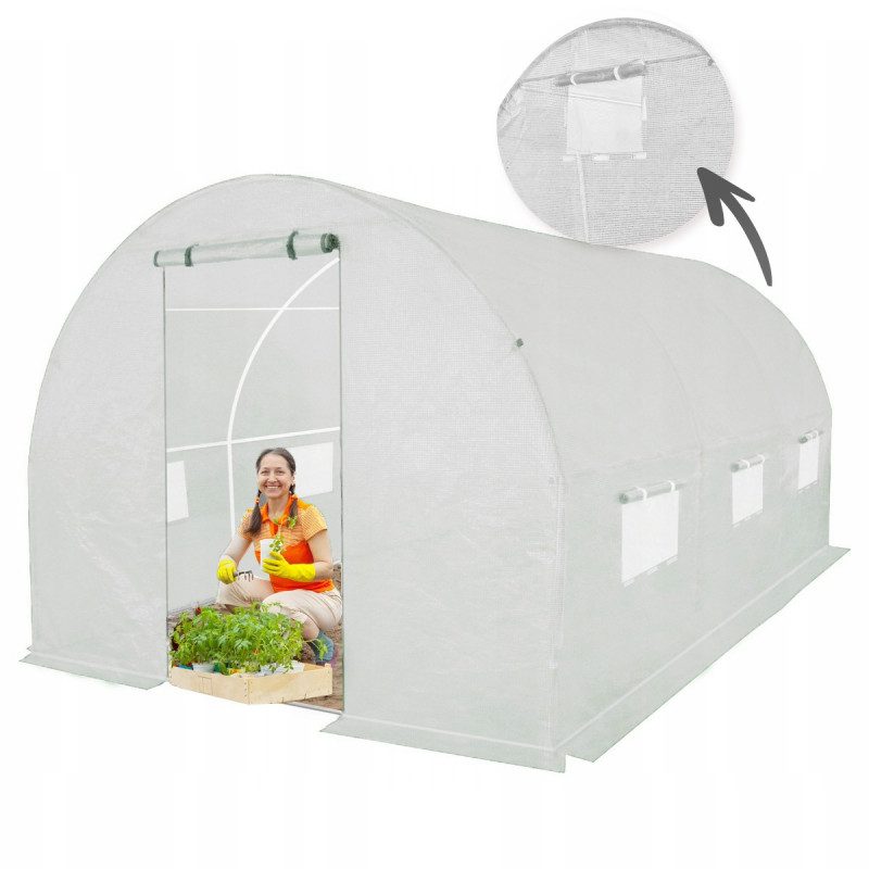 Šiame 7 m2 dydžio šiltnamyje yra įrengti šeši langeliai, kurie užtikrins, kad Jūsų auginamos gėrybės gautų pakankamai saulės spindulių. Langeliai turi tinklelį nuo uodų ir nuleidžiamas užuolaidas, kurių pagalba galite reguliuoti šiltnamyje esančią temperatūrą. Šiltnamio duris galima susukti į ritinį norint laikyti jas atviras, uždaryti šiltnamį galima užtrauktukų pagalba.