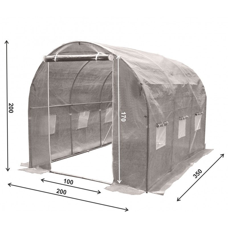 Šiame 7 m2 dydžio šiltnamyje yra įrengti šeši langeliai, kurie užtikrins, kad Jūsų auginamos gėrybės gautų pakankamai saulės spindulių. Langeliai turi tinklelį nuo uodų ir nuleidžiamas užuolaidas, kurių pagalba galite reguliuoti šiltnamyje esančią temperatūrą. Šiltnamio duris galima susukti į ritinį norint laikyti jas atviras, uždaryti šiltnamį galima užtrauktukų pagalba.