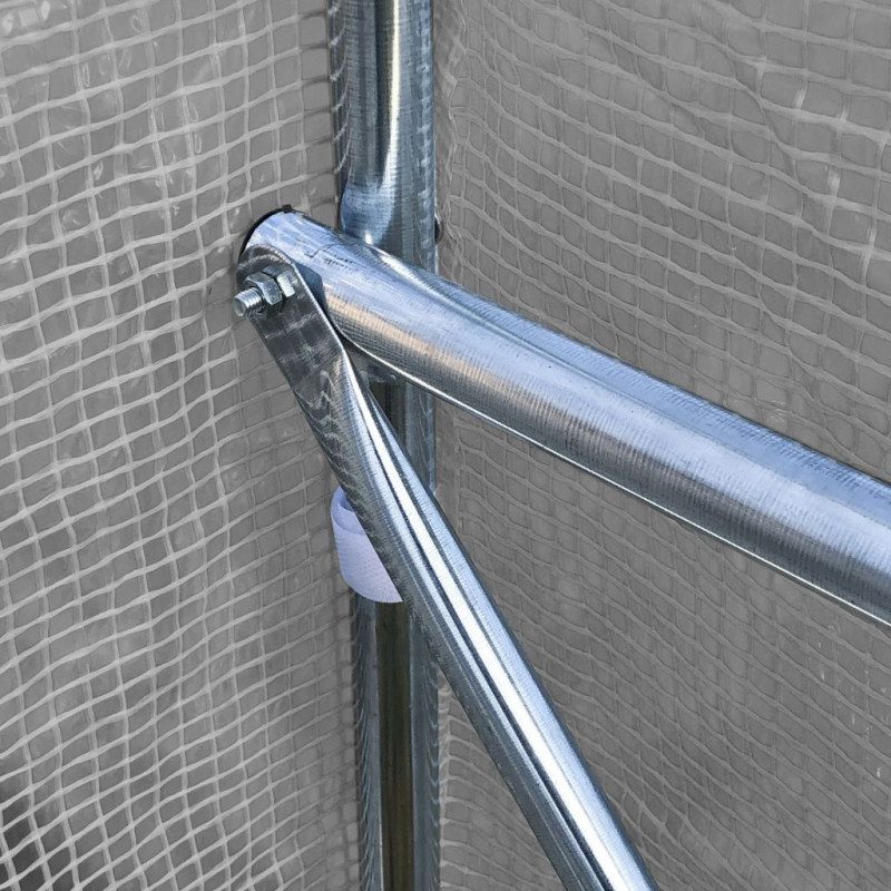 Cinkuoto plieno rėmas su papildomais apsauginiais kaiščiais užtikrina šiltnamio konstrukcijos stabilumą. Šiltnamio konstrukcija itin lengva bei mobili, todėl nesudėtingai galėsite jį perkelti į Jūsų norimą vietą. Montavimo metu rekomenduojame užpilti šiltnamio kraštus, kurie yra 20 cm ilgio, dirvožemio sluoksniu. Tai užtikrins, kad konstrukcija būtų stabili bei atspari nepalankioms oro sąlygoms. Šiltnamio komplektacijoje yra montavimo varžtai be aštrių briaunų.