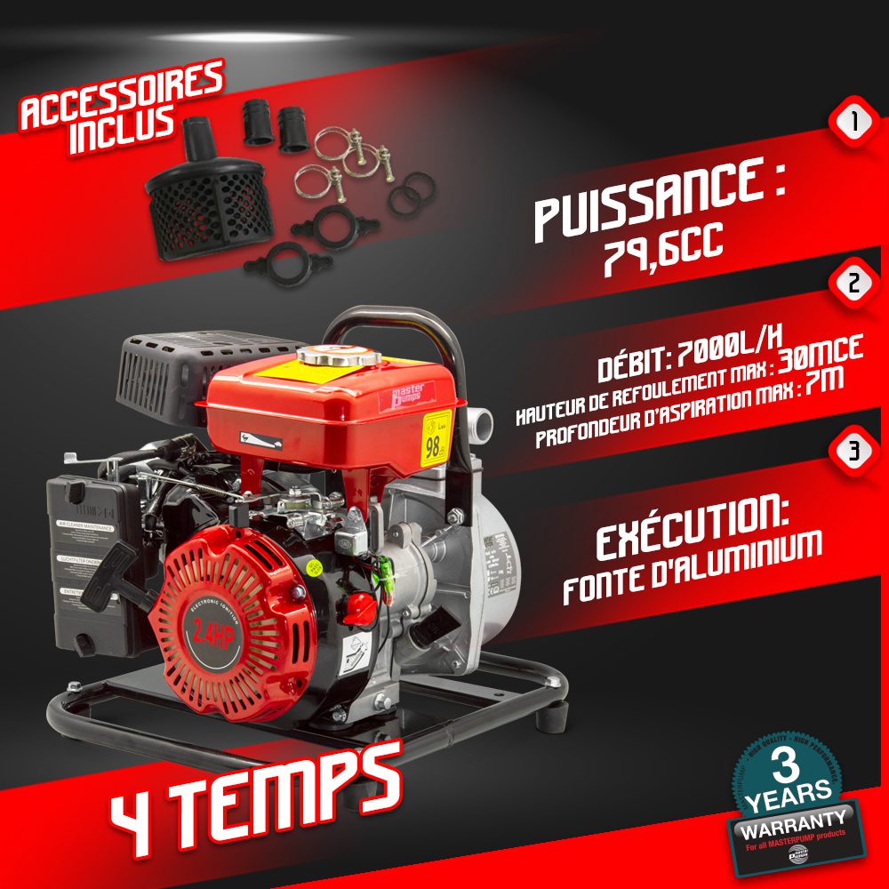 Termodinaminis vandens siurblys yra puikus pasirinkimas laistymo, baseino ištuštinimo arba potvynio atvejais. Šis galingas siurblys veikia su 95 oktanų bešviniu benzinu ir turi maždaug 1.5 valandos darbinį laiką, todėl yra itin patogus naudoti įvairiose vietose. Siurblys gali perduoti vandenį maksimaliu našumu – 7000 litrų per valandą. Jis geba siurbti vandenį iki 7 metrų gylio ir jį išleisti iki 30 metrų aukščio, todėl yra puikus pasirinkimas tiek mažiems, tiek didesniems darbams.