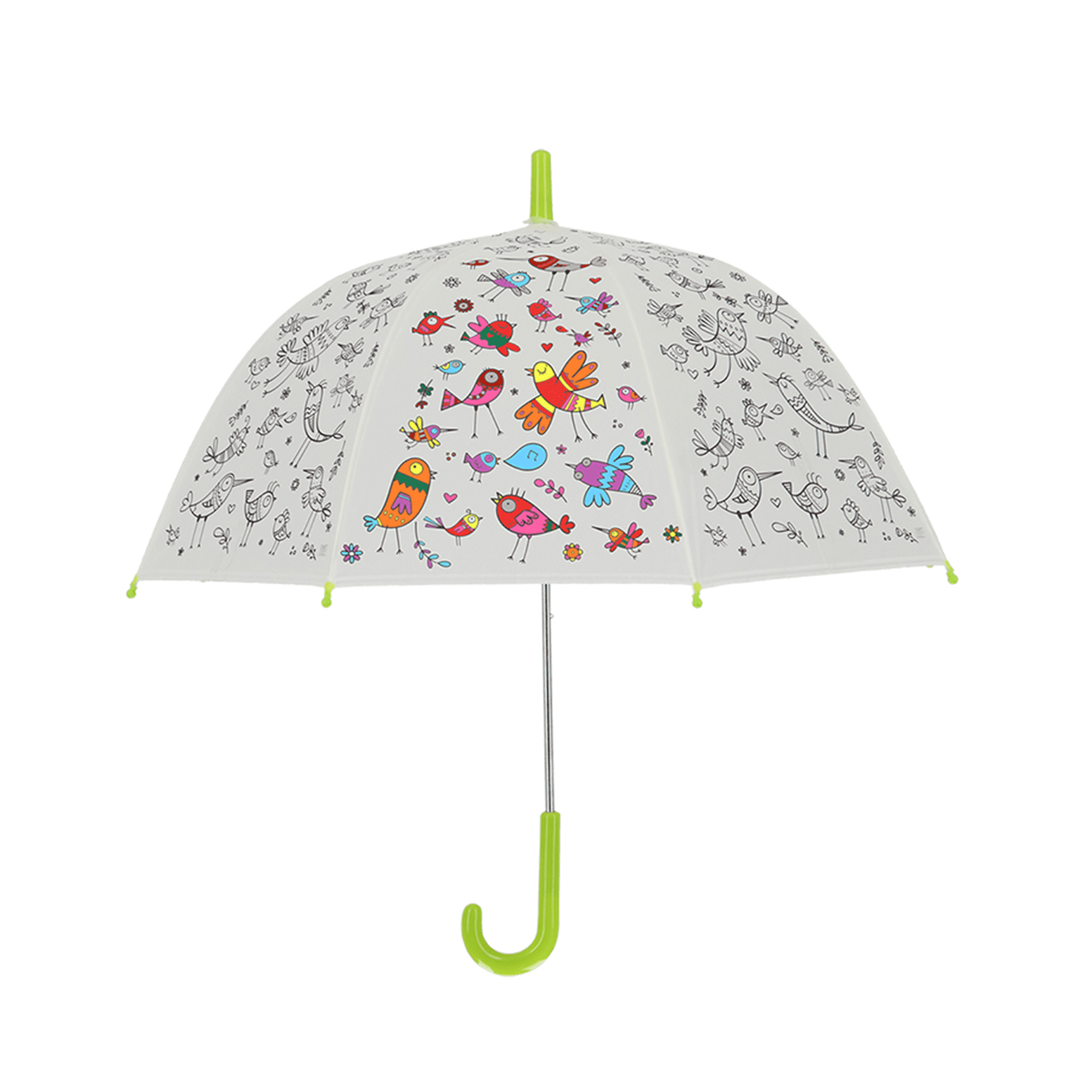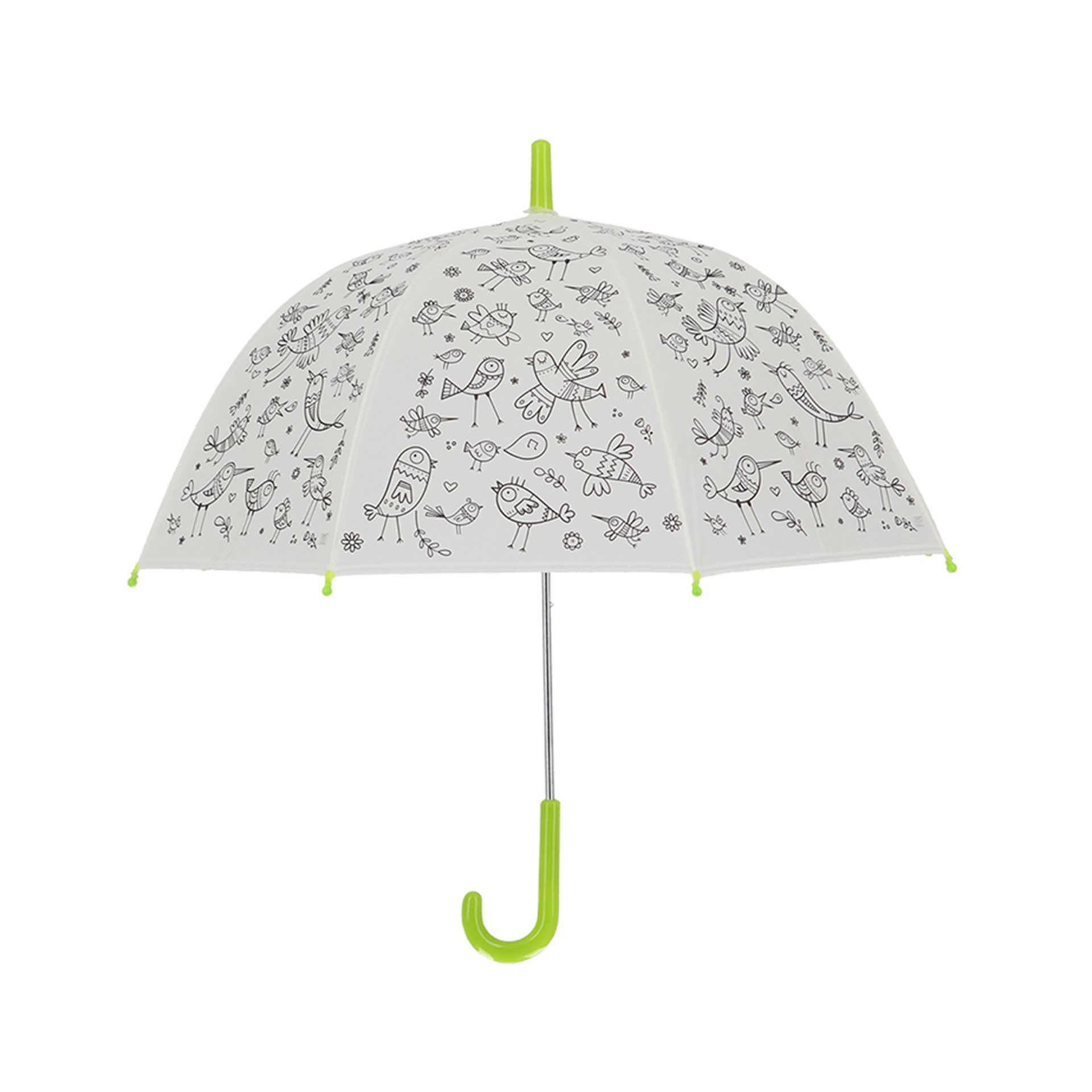 Nėra blogo oro – reikalingi tik tinkami aksesuarai! Skėtis gali tapti ypatingu, kai jį nuspalvini pats. Dailios formos skėtis, išpieštas linksmais paukšteliais, kuriuos galima nuspalvinti ir pasivaikščiojimą lietuje paversti spalvingai smagiu. Leiskite mažųjų kūrybiškumui lietis per kraštus spalvojant šį skėtį.