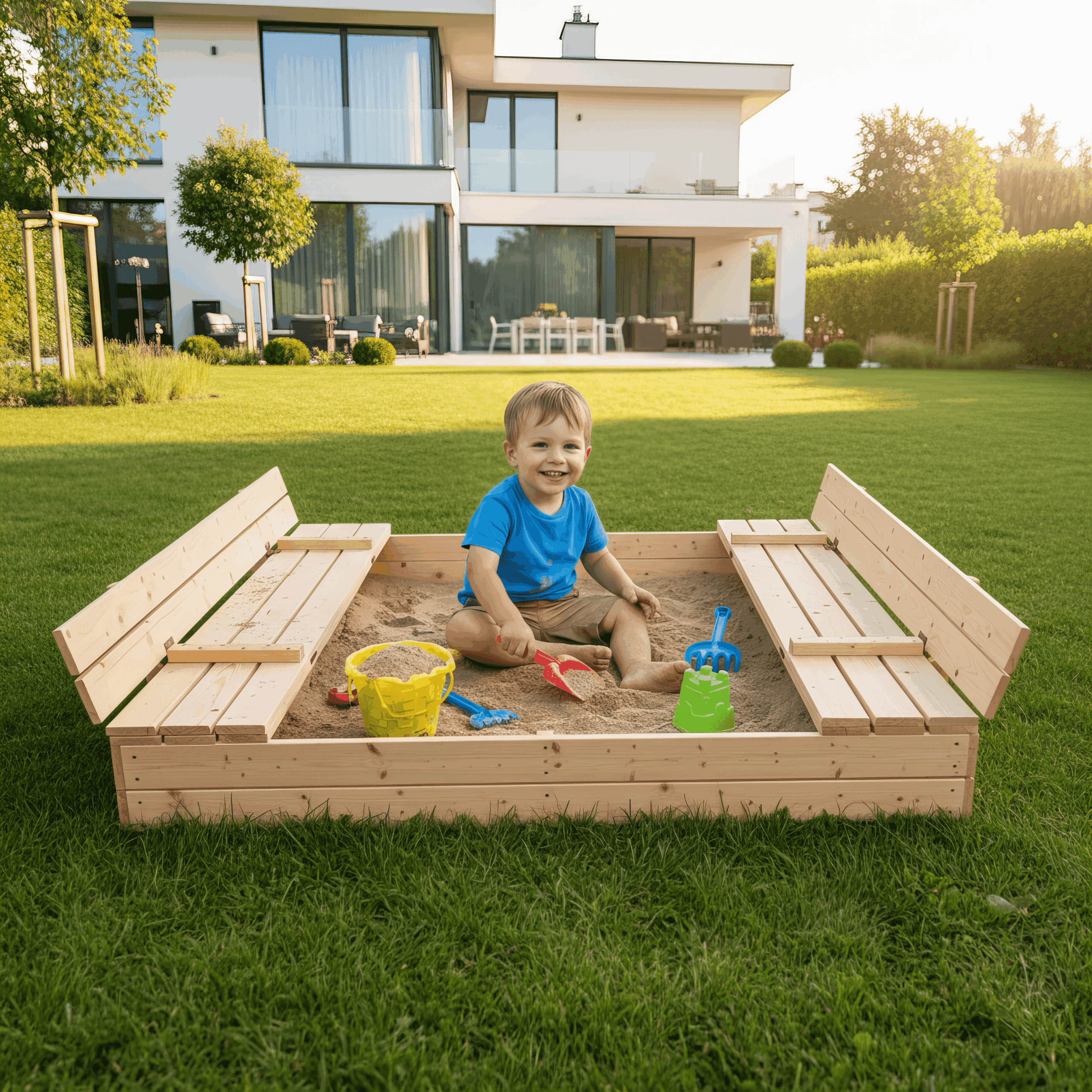 Vaikystė dažnai prasideda nuo paprastų, bet labai svarbių dalykų – smėlio tarp pirštų, tyliai gimstančių istorijų ir ilgų žaidimų gryname ore. Medinė smėlio dėžė su dangčiu, kuris išsilanksto į patogius suoliukus, padeda sukurti jaukią, tvarkingą ir vaikams patogią žaidimų erdvę kieme, kurioje smagios akimirkos tampa kasdienybės dalimi.