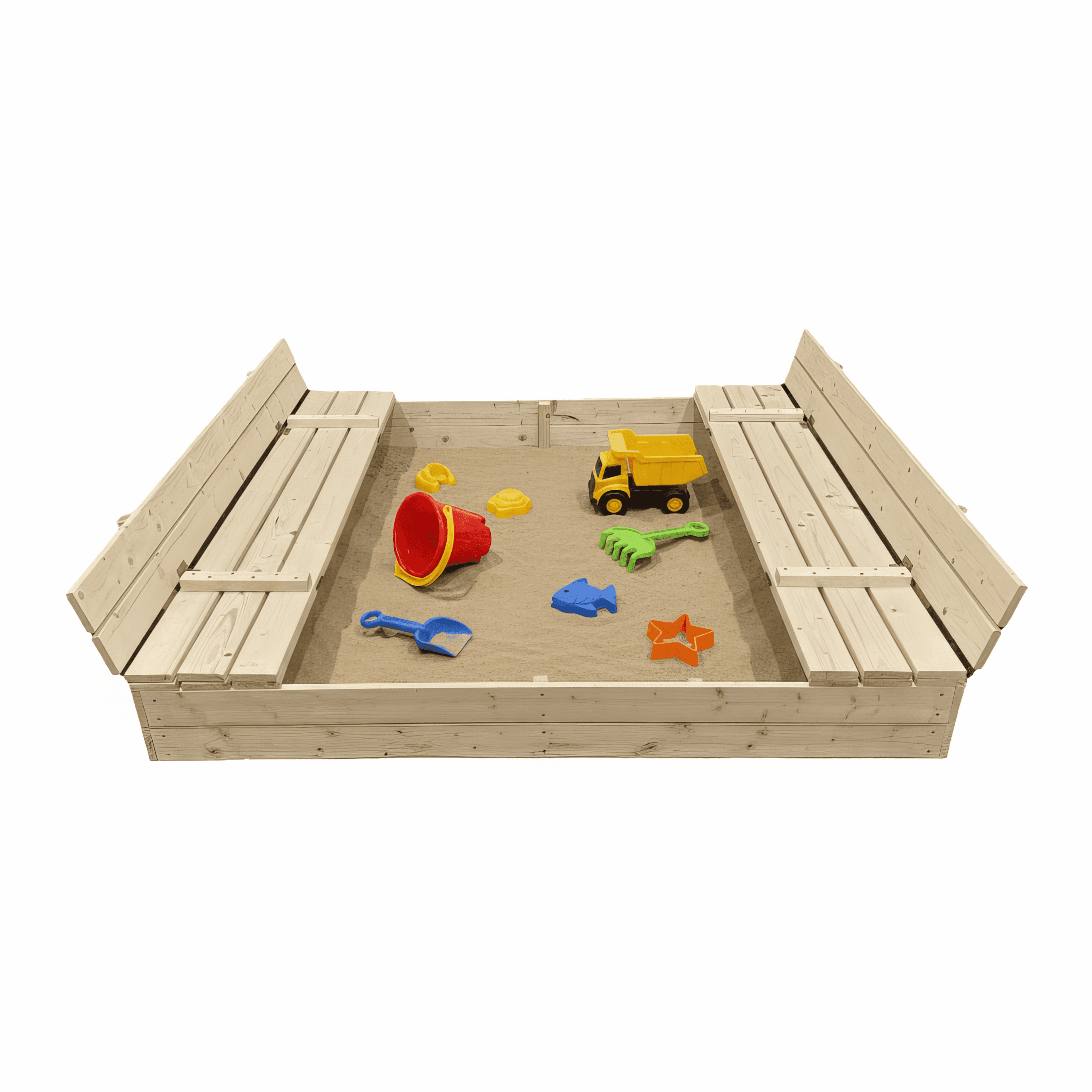 Vaikystė dažnai prasideda nuo paprastų, bet labai svarbių dalykų – smėlio tarp pirštų, tyliai gimstančių istorijų ir ilgų žaidimų gryname ore. Medinė smėlio dėžė su dangčiu, kuris išsilanksto į patogius suoliukus, kartu su smėliu komplekte padeda sukurti jaukią ir vaikams patogią žaidimų erdvę kieme.