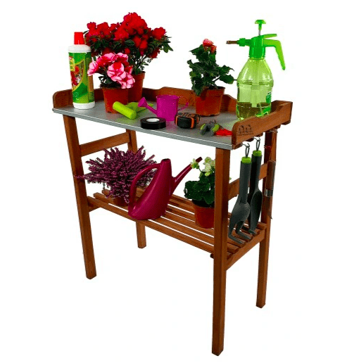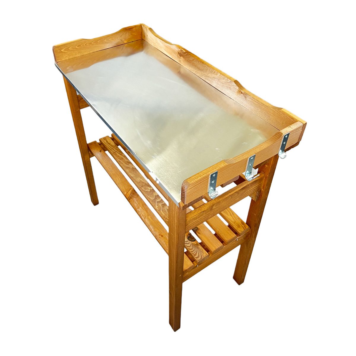 Medinis sodininko staliukas – itin praktiškas pasirinkimas augalų persodinimui, smulkių sodo įrankių laikymui ar žolelių auginimui. Pagamintas iš impregnuotos pušies medienos, tad puikiai tinka naudojimui lauke. Dėl klasikinio ir minimalistinio dizaino, tinka naudoti sode, balkone, terasoje ar kitoje vietoje. Praktiškas bei kompaktiškas medinis staliukas gali taip pat tapti ir stilinga Jūsų erdvės detale.