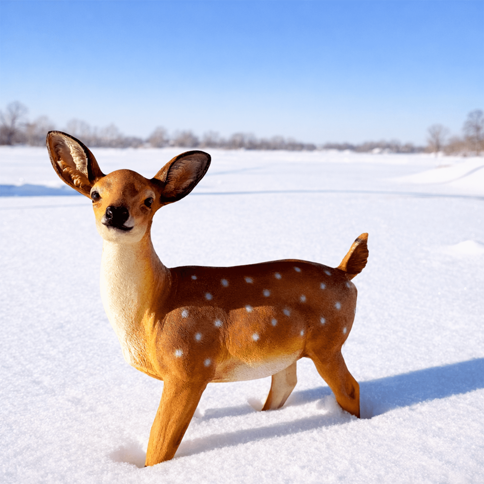Puikiai tinka ne tik kraštovaizdžio dizainui, bet ir sezoniniam ar šventiniam dekorui – ypač žiemos ir Kalėdų laikotarpiu, kai stirniukas sukuria jaukią ir šventišką atmosferą.