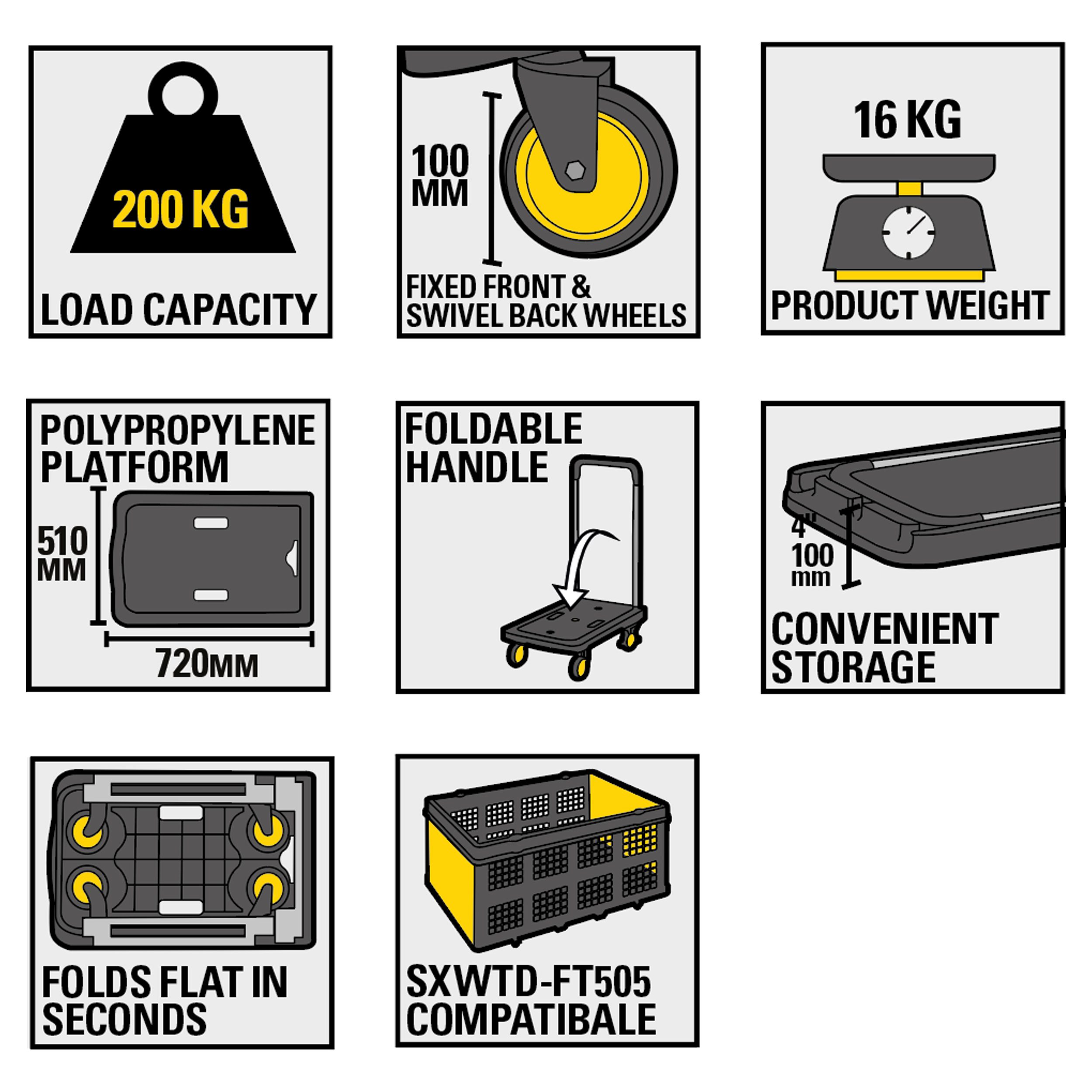 Patentuotas 4 ratų sulankstomas krovininis vežimėlis. Konstrukcija sulankstoma vos per kelias sekundes. Pagrindiniai plastikiniai apkrovos taškai pagaminti iš ypač tvirto nailono, kitos plastikinės dalys – iš polipropileno, o korpusas – iš aliuminio ir nerūdijančio plieno.
