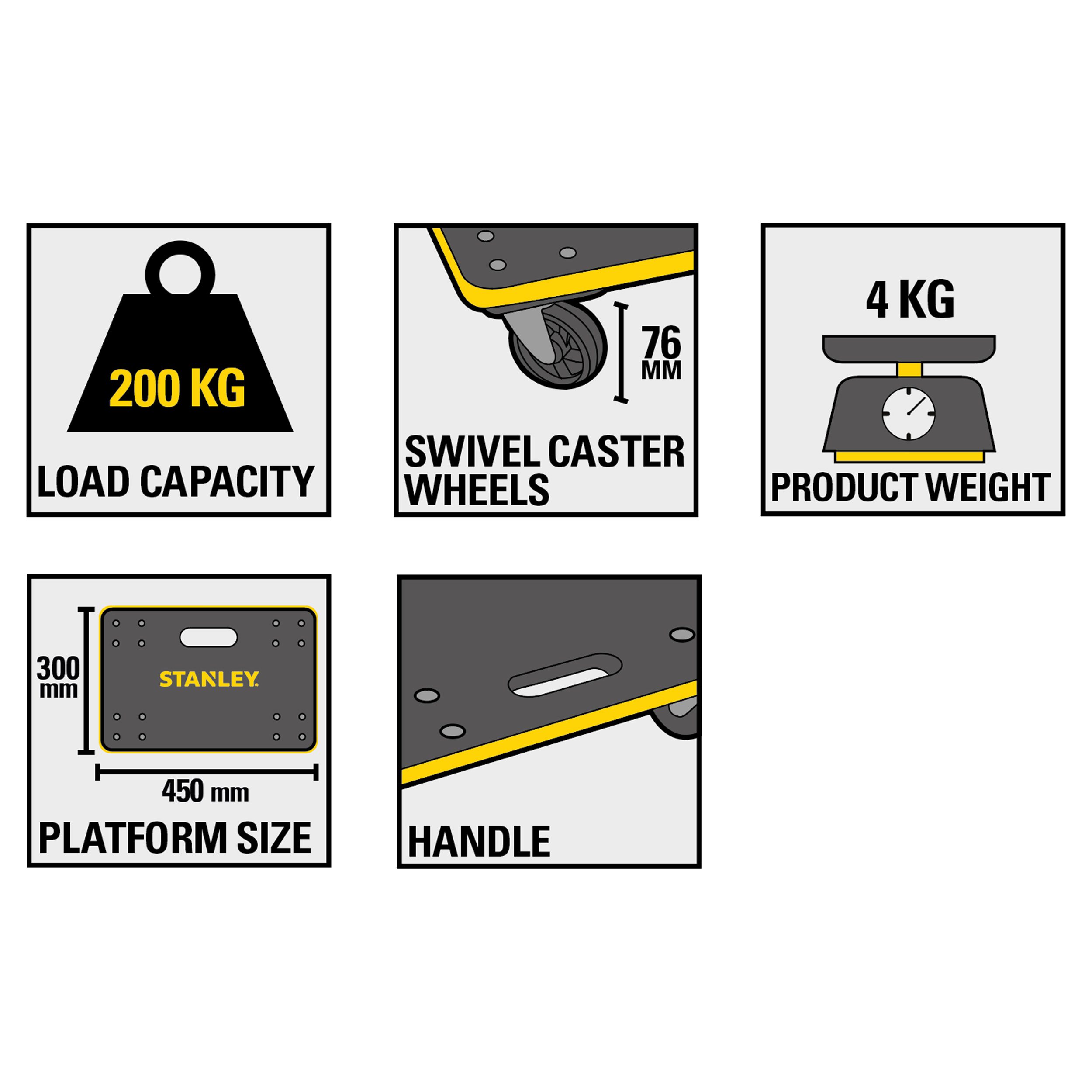 4iQ › Parduotuvė › Sodui/daržui › Karučiai ir vežimėliai › Krovinių platforma Stanley MS573, 200 kg