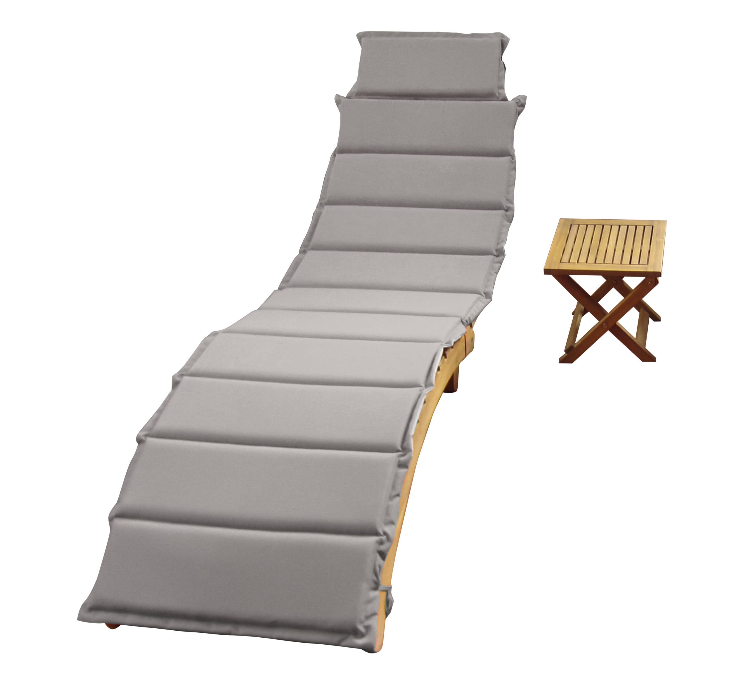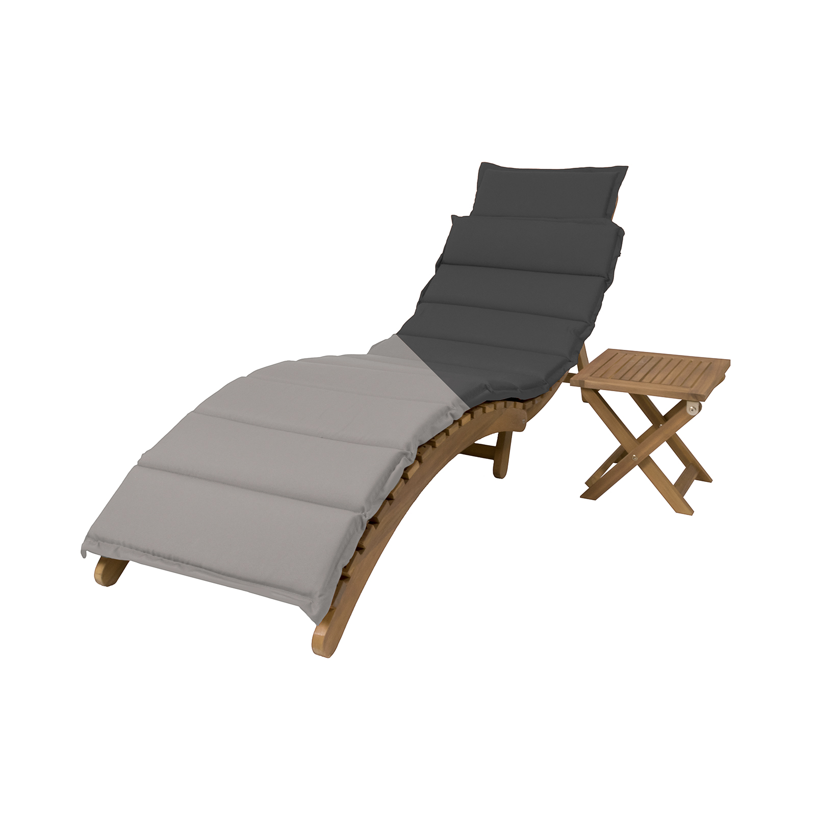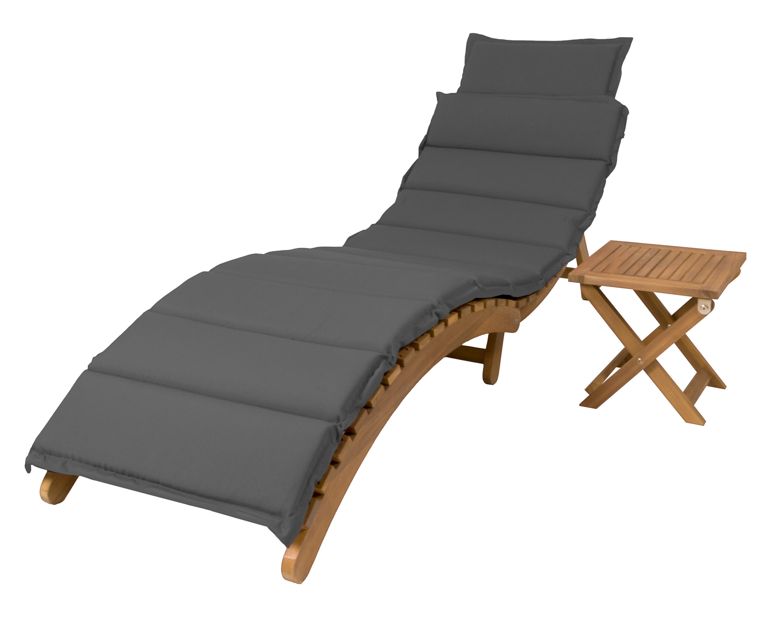 Sulankstomas gultas ir šoninis staliukas pagaminti iš aukštos kokybės akacijos medienos, kuri yra tvari ir sertifikuota pagal FSC® (Forest Stewardship Council) standartus. Natūralus aliejuotas paviršius užtikrina atsparumą UV spinduliams, drėgmei ir temperatūros svyravimams, todėl baldai puikiai tinka lauko sąlygoms.
