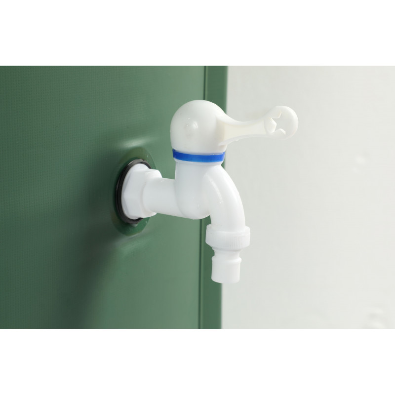 Vandens rezervuaras turi du čiaupus: baltos spalvos čiaupas skirtas leisti vandenį be žarnos pagalbos, juodos spalvos čiaupo tipo jungtis skirta prijungti laistymo žarną ir naudoti vandenį iškart iš rezervuaro.