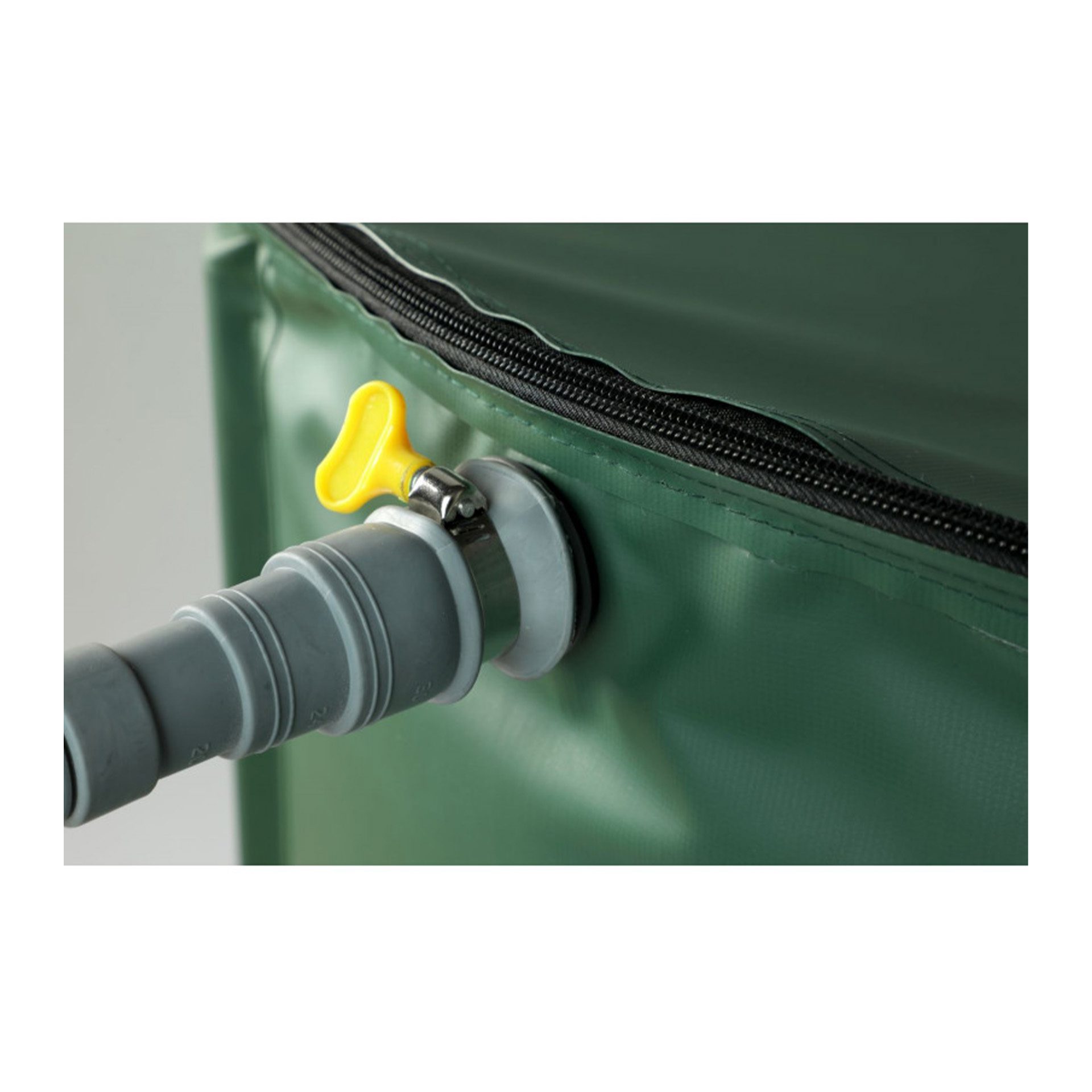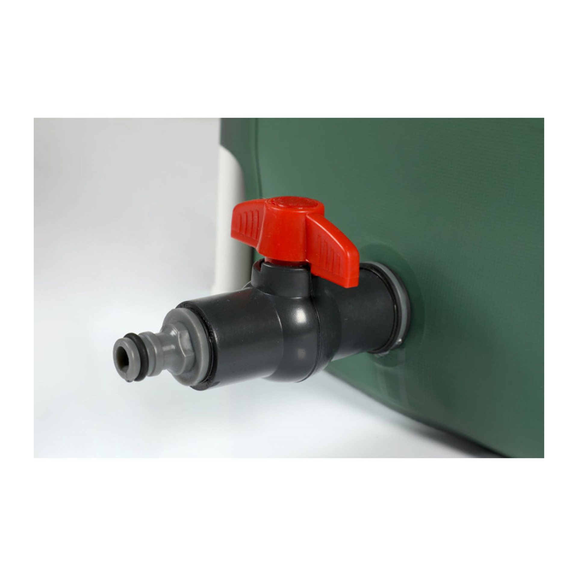 Vandens rezervuaras turi du čiaupus: baltos spalvos čiaupas skirtas leisti vandenį be žarnos pagalbos, juodos spalvos čiaupo tipo jungtis skirta prijungti laistymo žarną ir naudoti vandenį iškart iš rezervuaro.