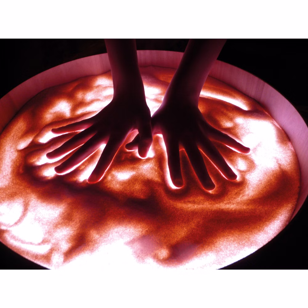 - Smulkioji motorika ir koncentracija – piešimas smėliu, šviesos efektai leidžia vaikams fokusuotis ir tyrinėti pojūčius.